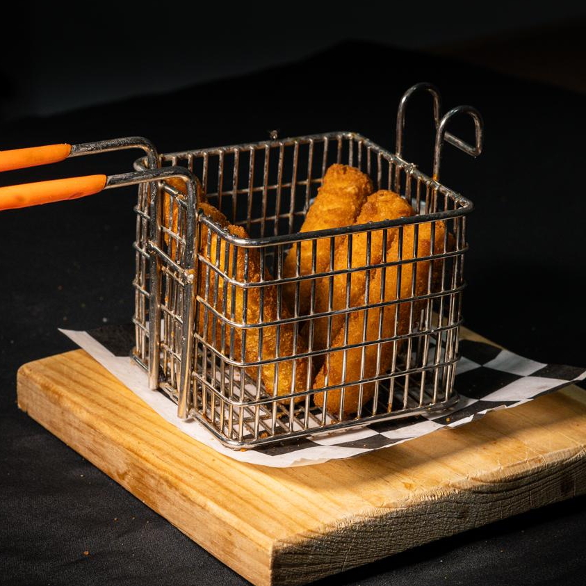 Camarones deliciosamente sazonados con morrón, cebolla y queso cheddar. Incluye papas a la francesa.