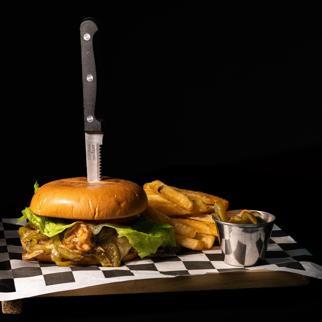 Carne de res y queso cheddar. Incluye papas a la francesa.