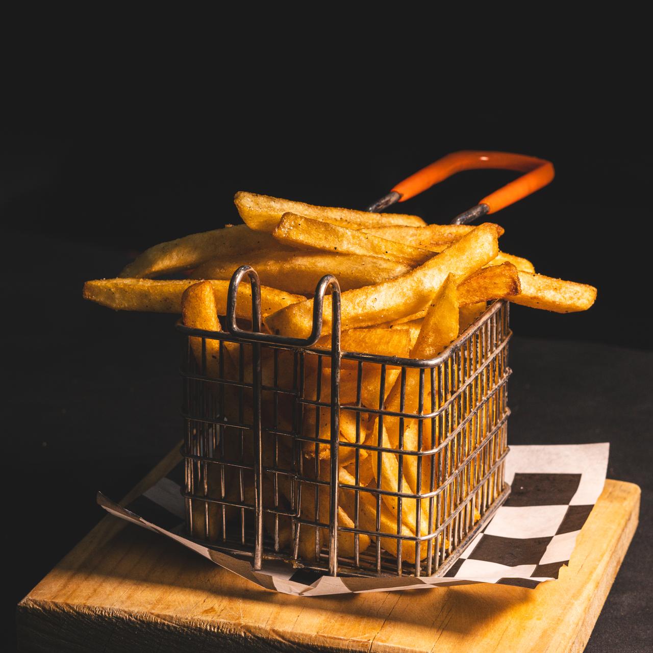 Carne de res, queso cheddar y tocino. Incluye papas a la francesa.