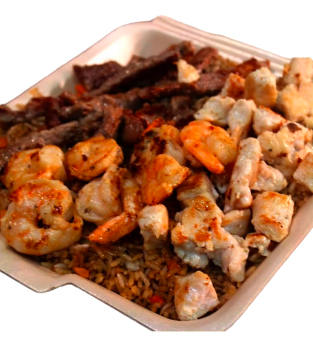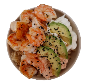 arroz frito camarón ala plancha salsa Tampico queso Philadelphia aguacate ajonjolí