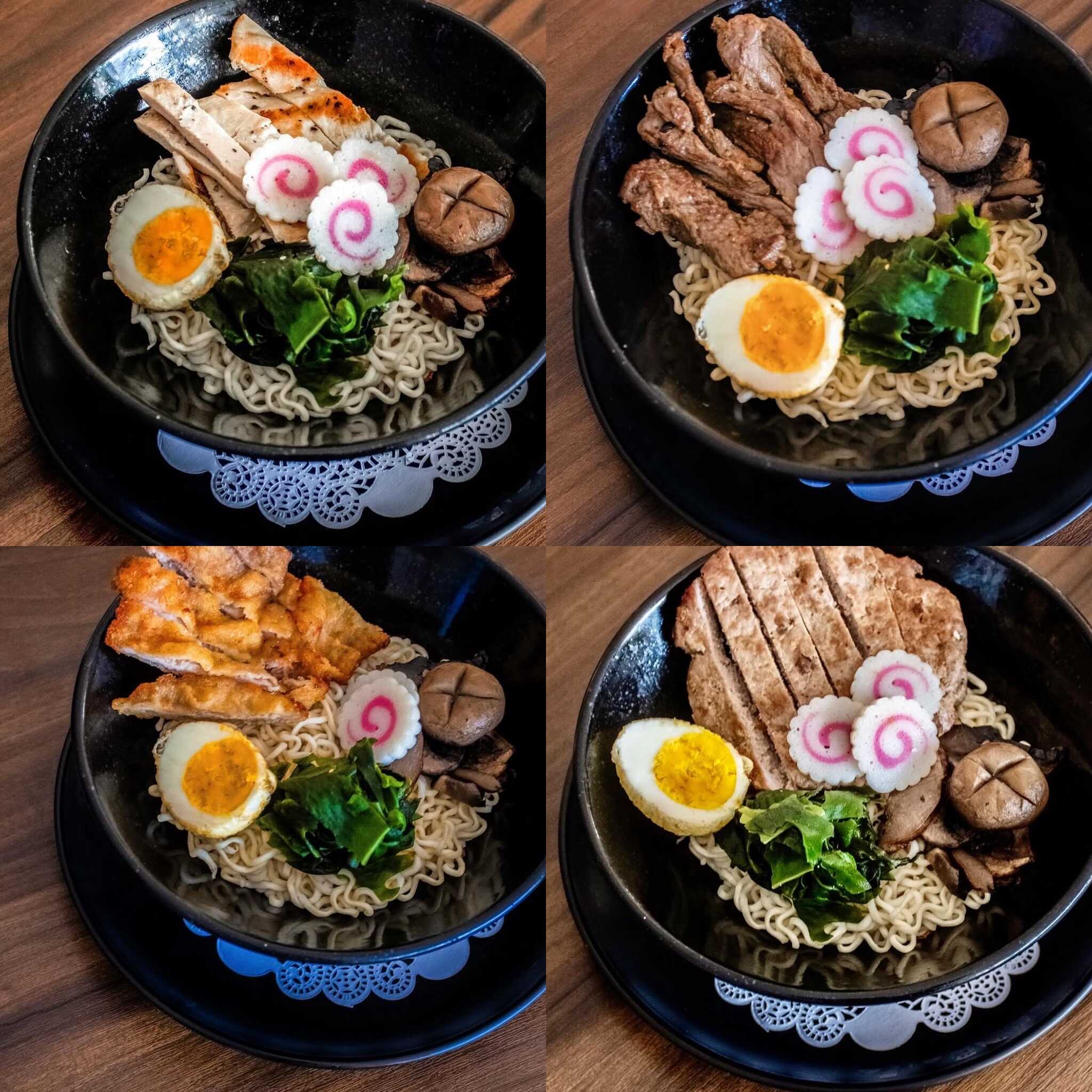 Base de fideos, mix de hongos, wakame, naruto y 1 proteína.