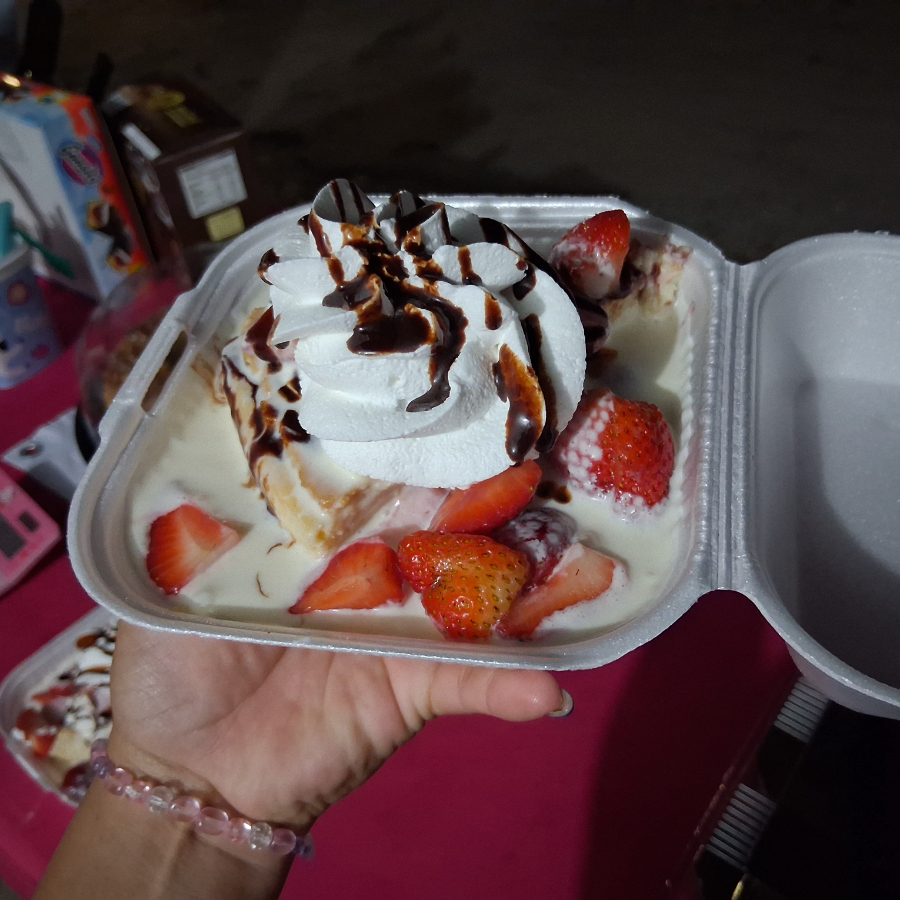 Concha rellena ,con fresas con crema,Nutella y topping de tu preferencia
