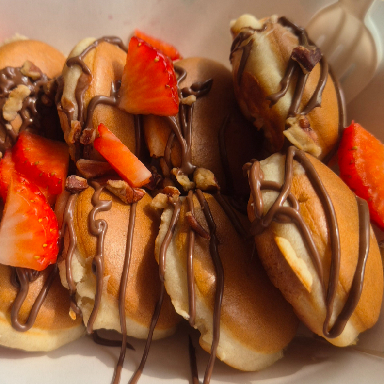 Orden de 25 esponjosos y deliciosos Mini Hotcakes con Topping de su preferecnia