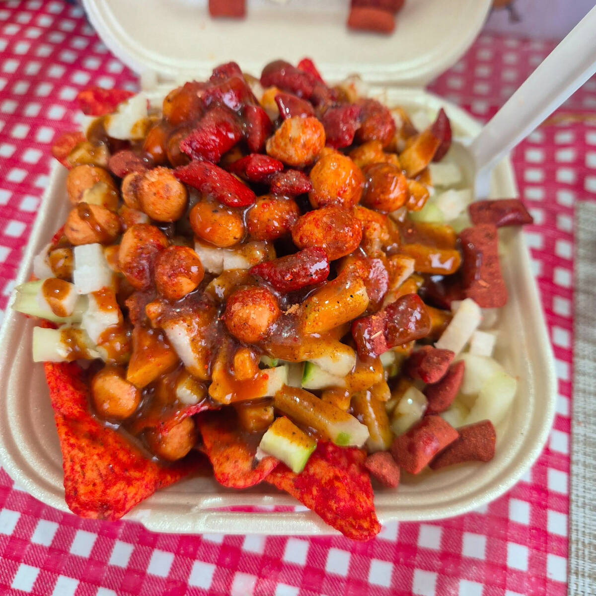 Sabritas de su preferencia Con jicama, pepino, cueritos , salchicha , rielitos de tamarindo, salsas y cacahuate.