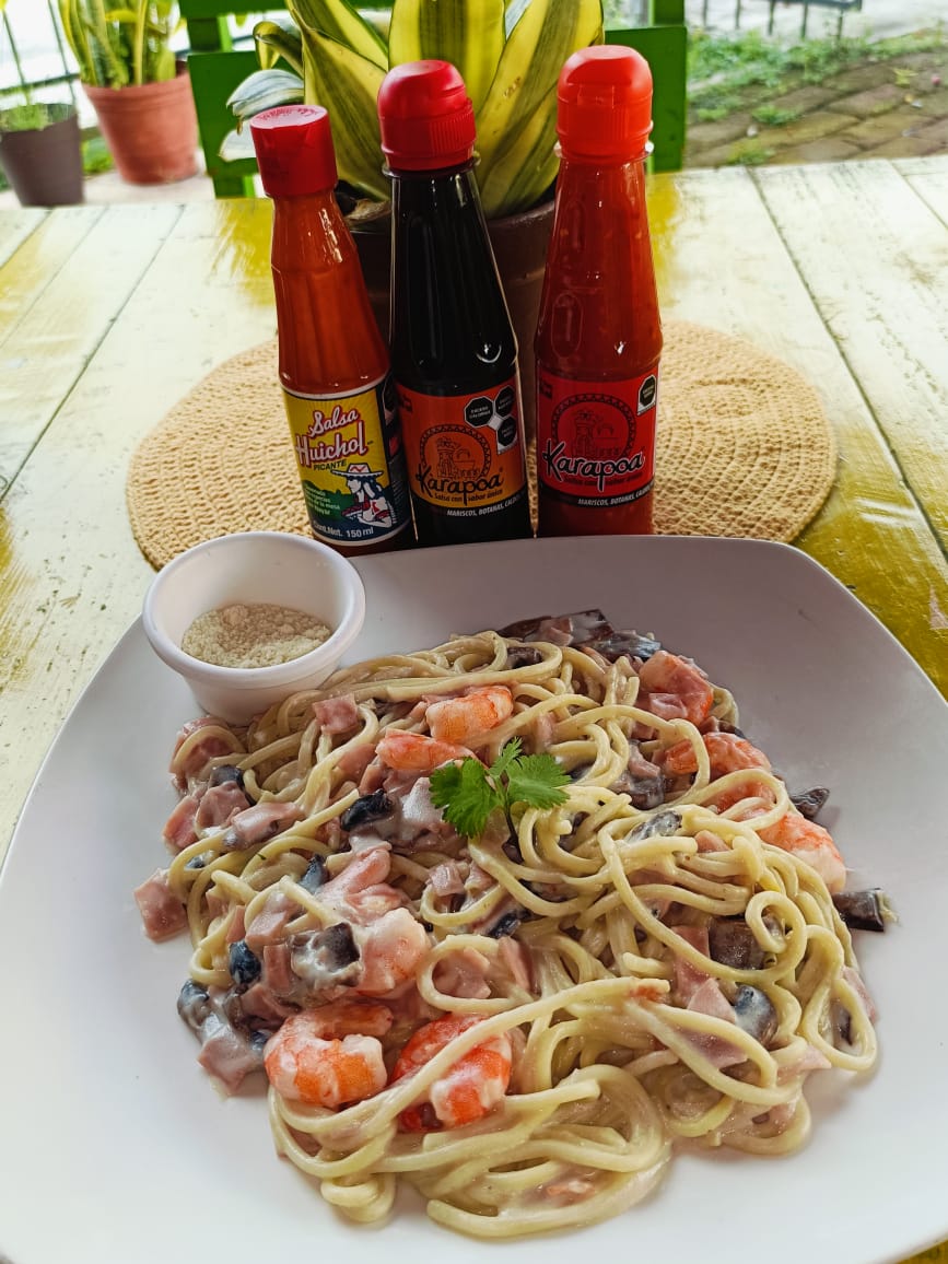 pasta con jamon champiñon y camaron