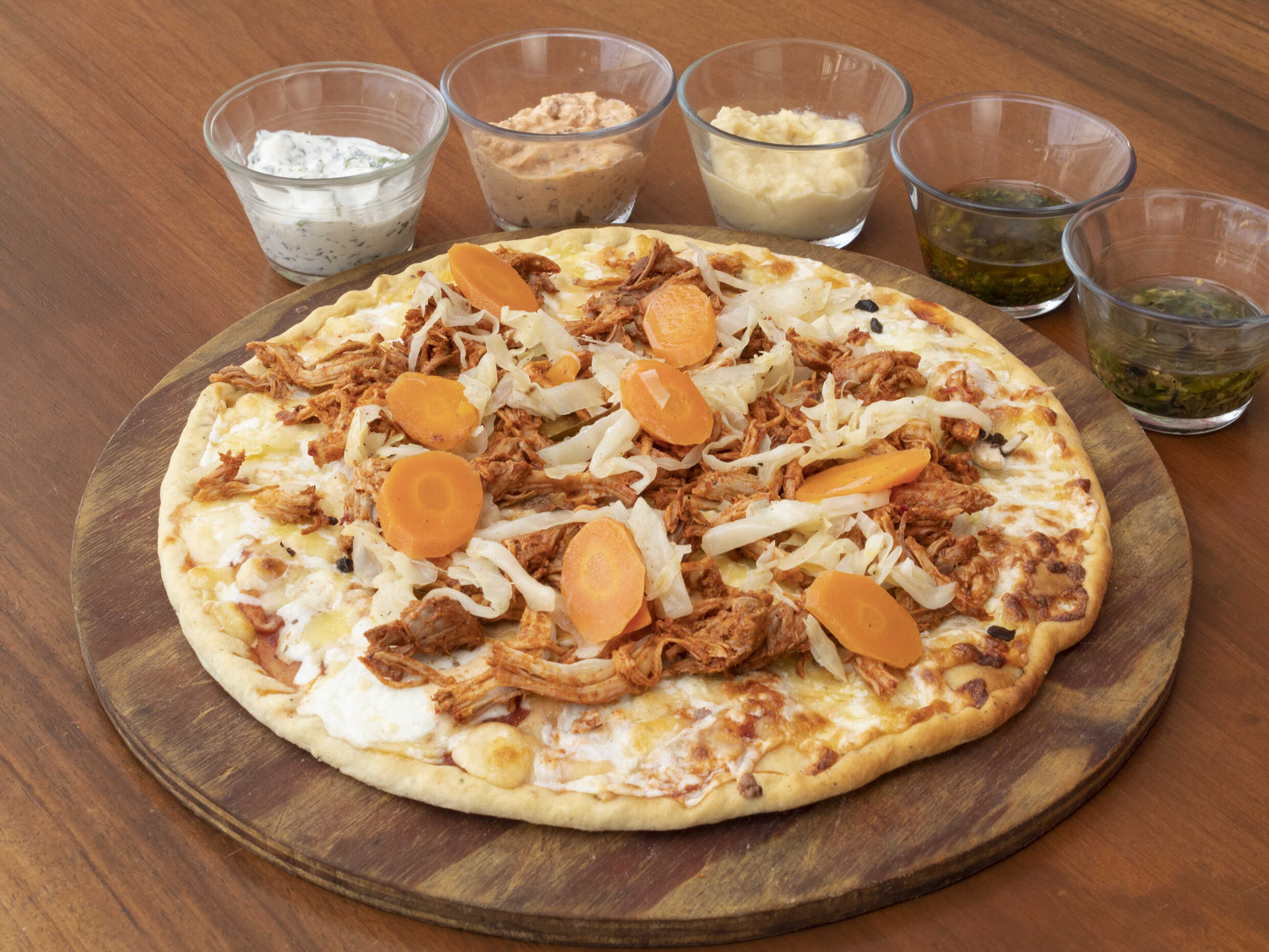 35 cm de pizza con lomo de cerdo al pastor con trozos de piña, 16 porciones aproximadamente