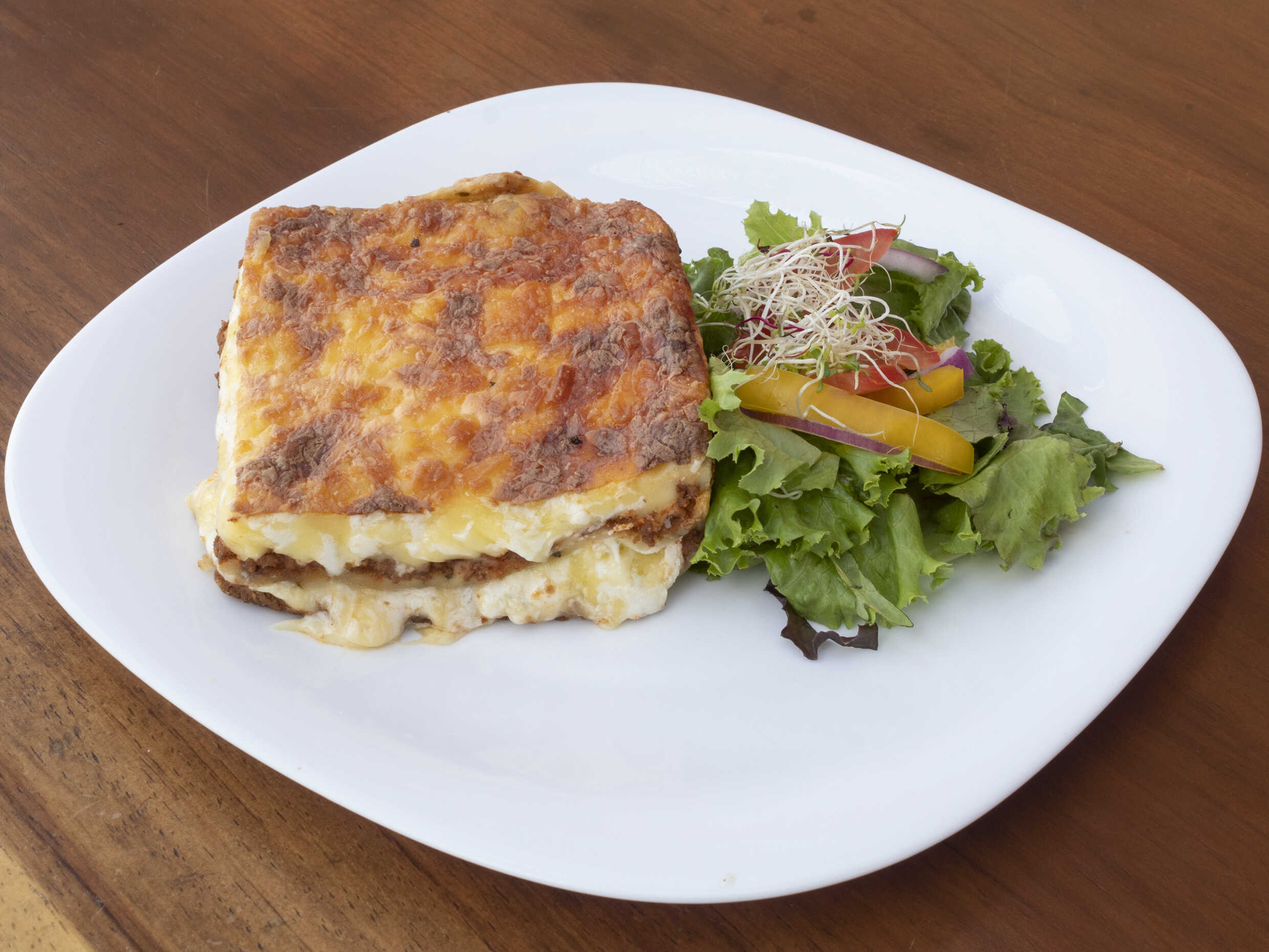 Laminas de pasta fresca intercaladas con una rica mezcla de quesos fundidos y relleno de carne arrachera con cebolla y pimiento. Acompañados de una ensalada.