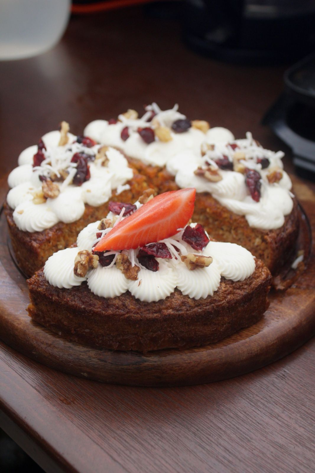 DE ZANAHORIA A BASE DE COCO Y ALMENDRA CON BETUN DE YOGURTH GRIEGO Y QUESO CREMA LIBRE DE AZUCAR Y GLUTEN