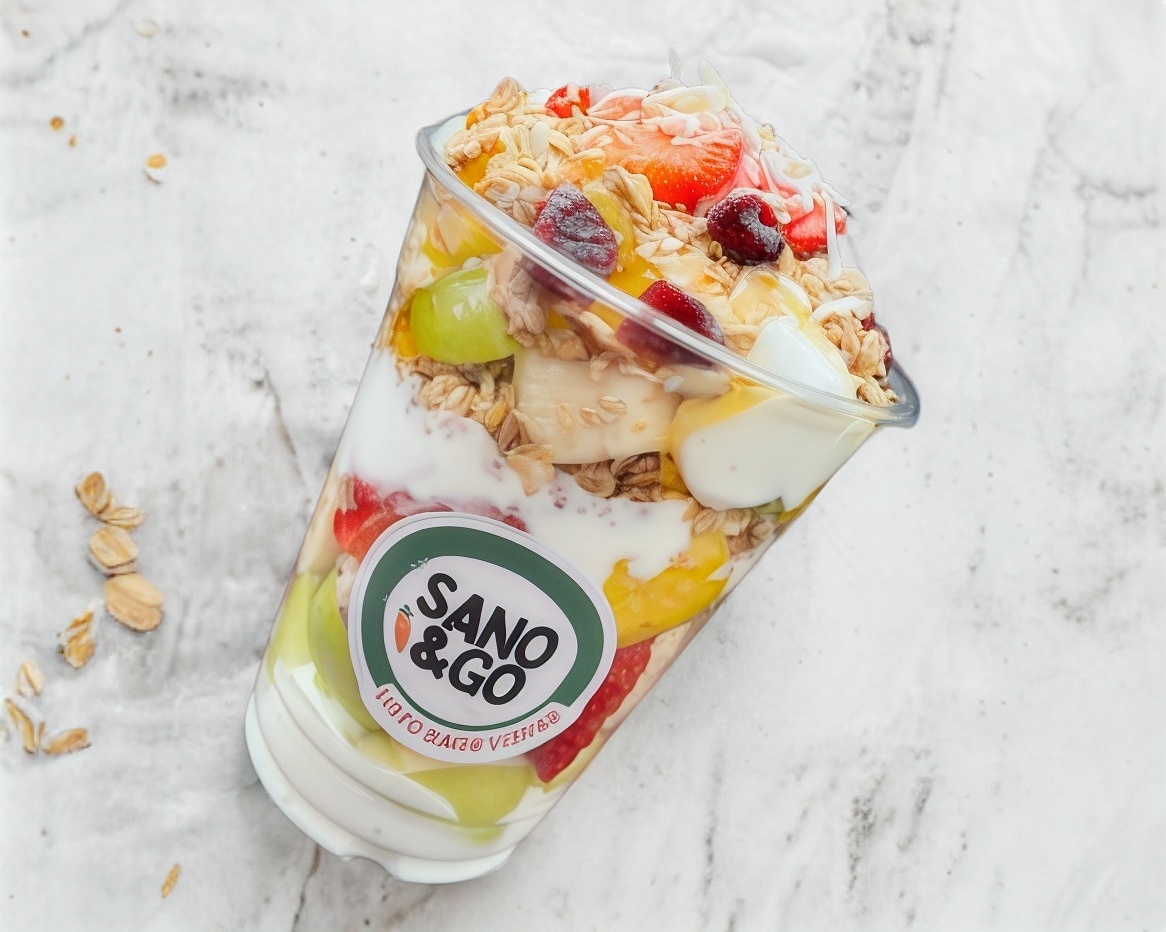 Vaso 16oz - Platano, melon, fresa, manzana y uva con granola 0% azucar y miel de abeja