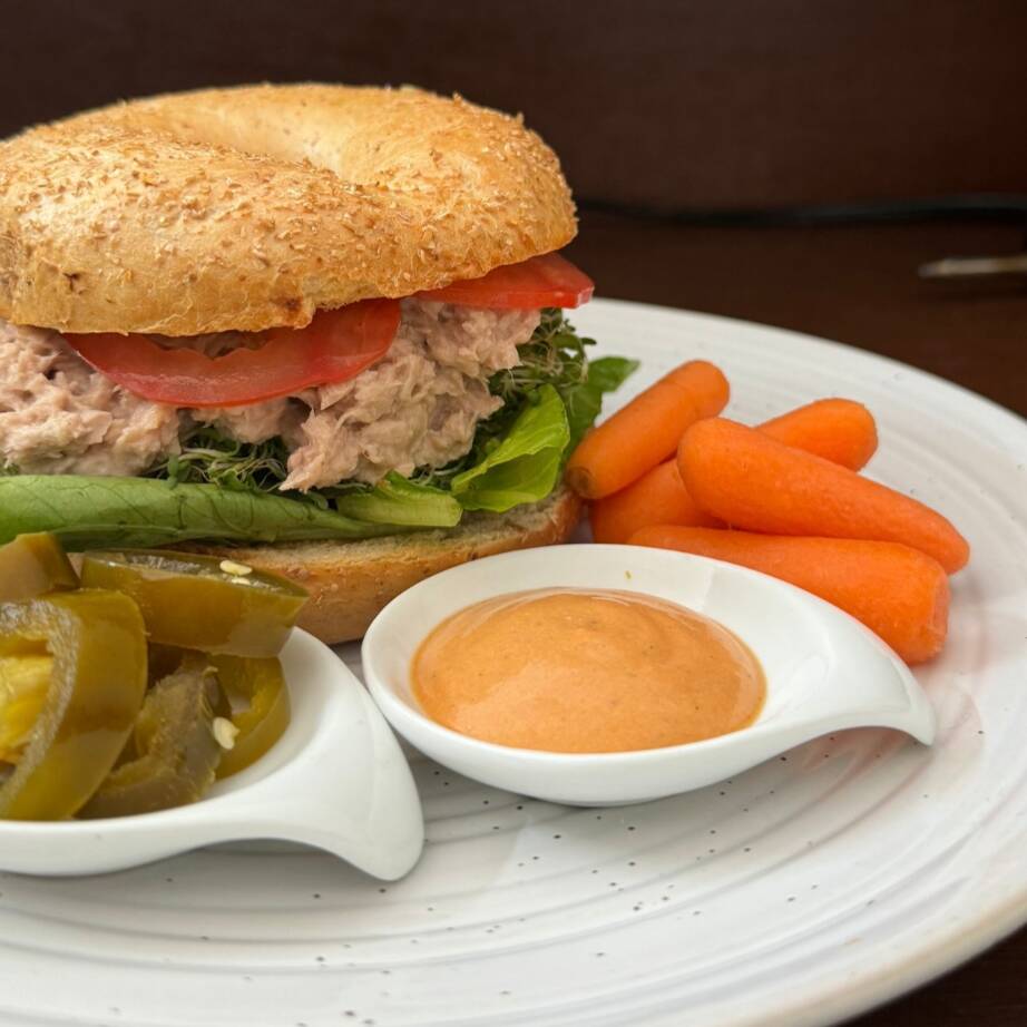 PAN ESTILO NY CON ATUN, LIMON Y UN TOQUE DE MAYONESA (LECHUGA, GERMINADO, JITOMATE, PEPINO Y AGUACATE)