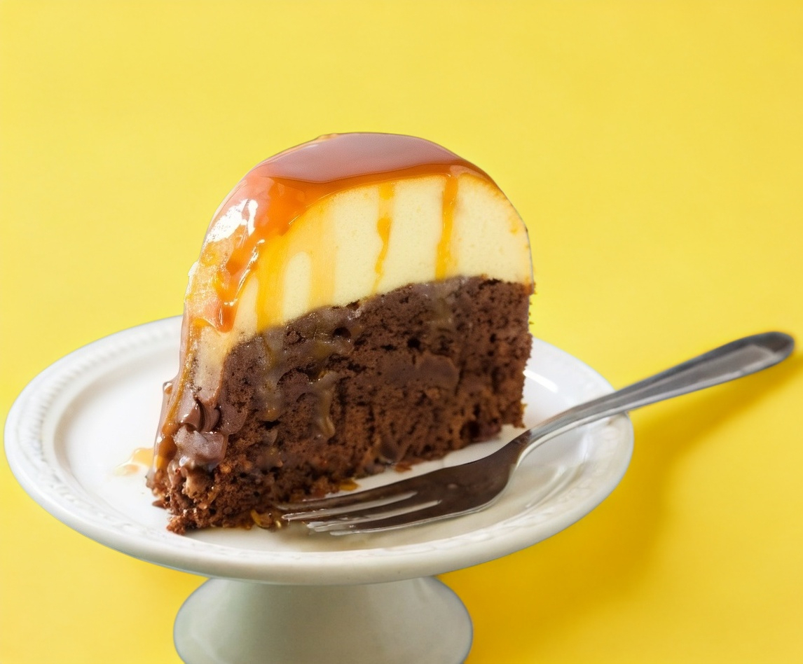 Rebanada de Cheesecake con dulce de Leche, Nutella chispas de chocolate y nuez