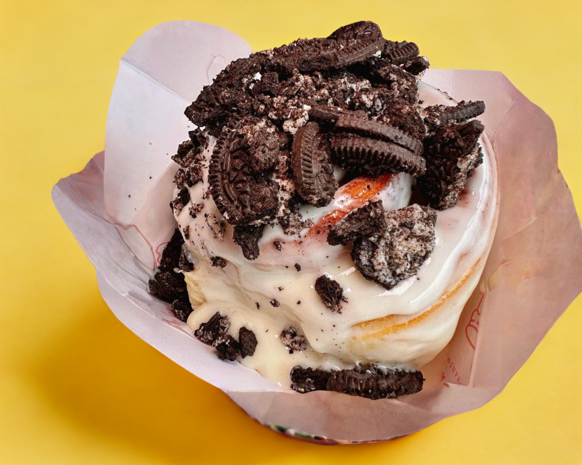 Rol de canela con crema lotus biscoff espolvoreado con galleta lotus!
