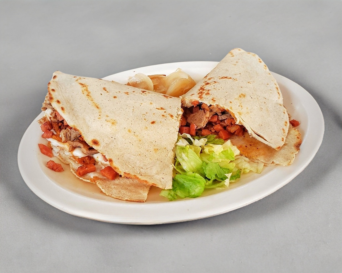 Agua De La Casa*1 + Quesadillas Especiales Barbacoa De Res*1