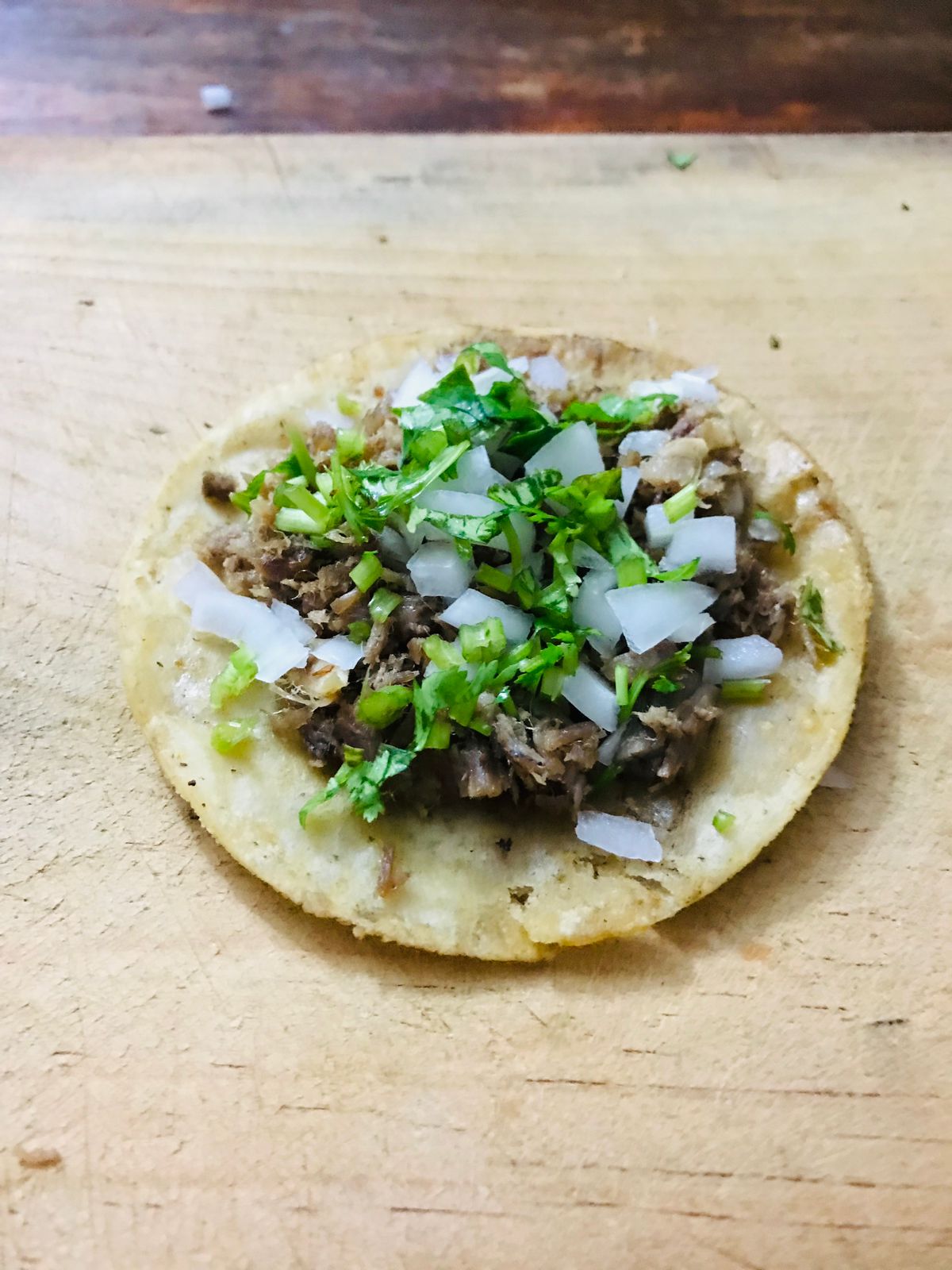 Tortilla de maíz con carne asada y queso