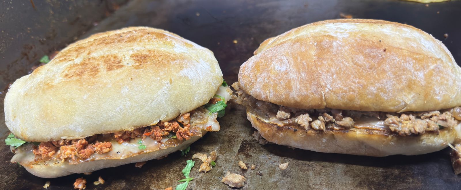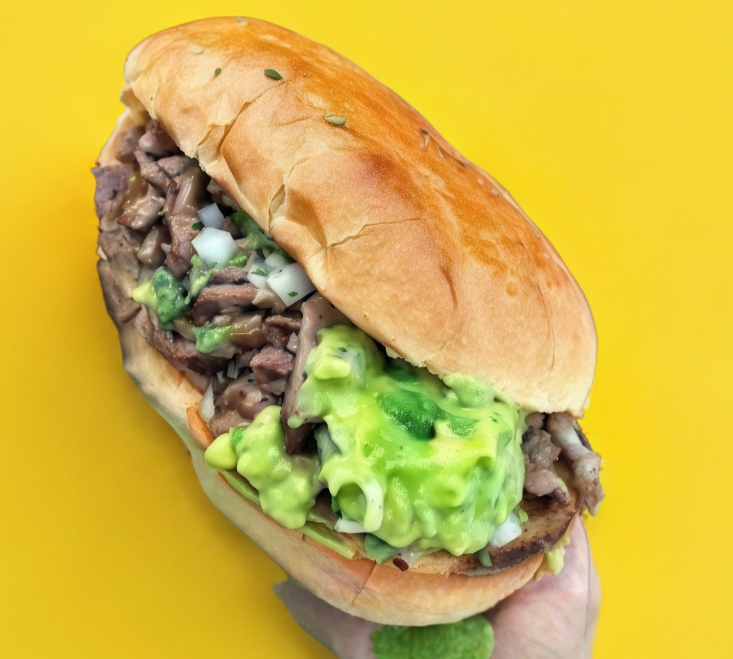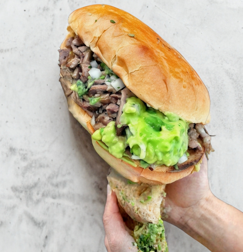 bolillo, la mayonesa, queso, la asada y el chorizo (No lleva aguacate )