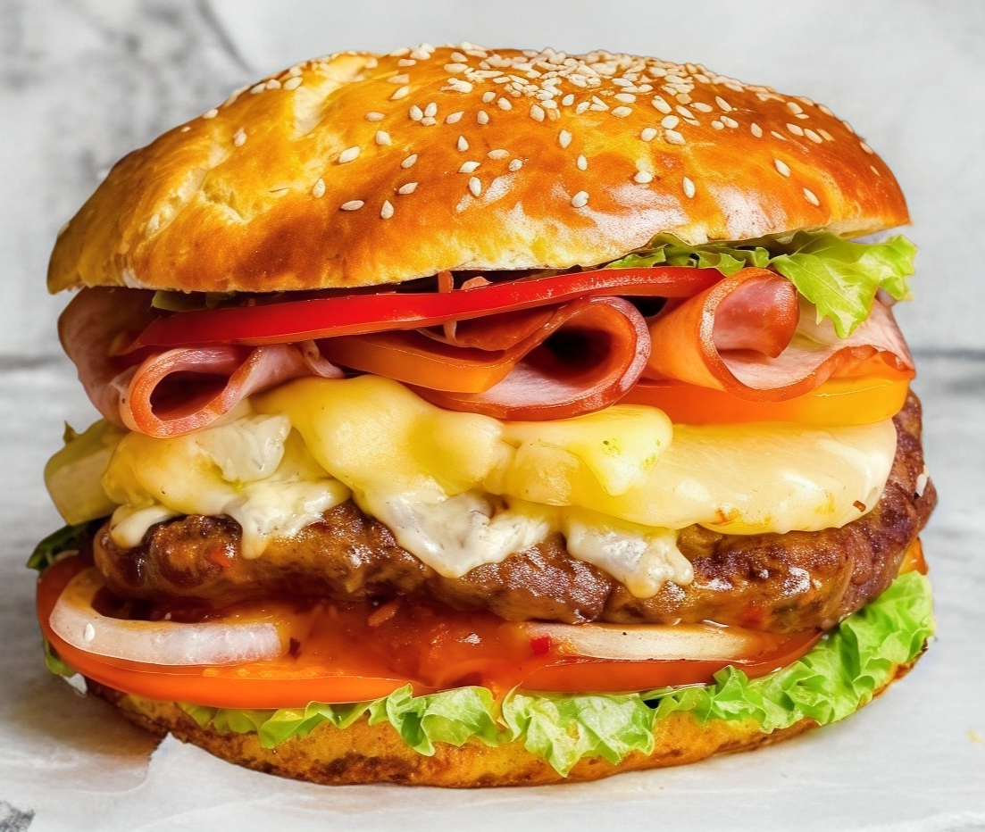 carne para hamburguesa jamon queso amarrillo queso asadero y tocino