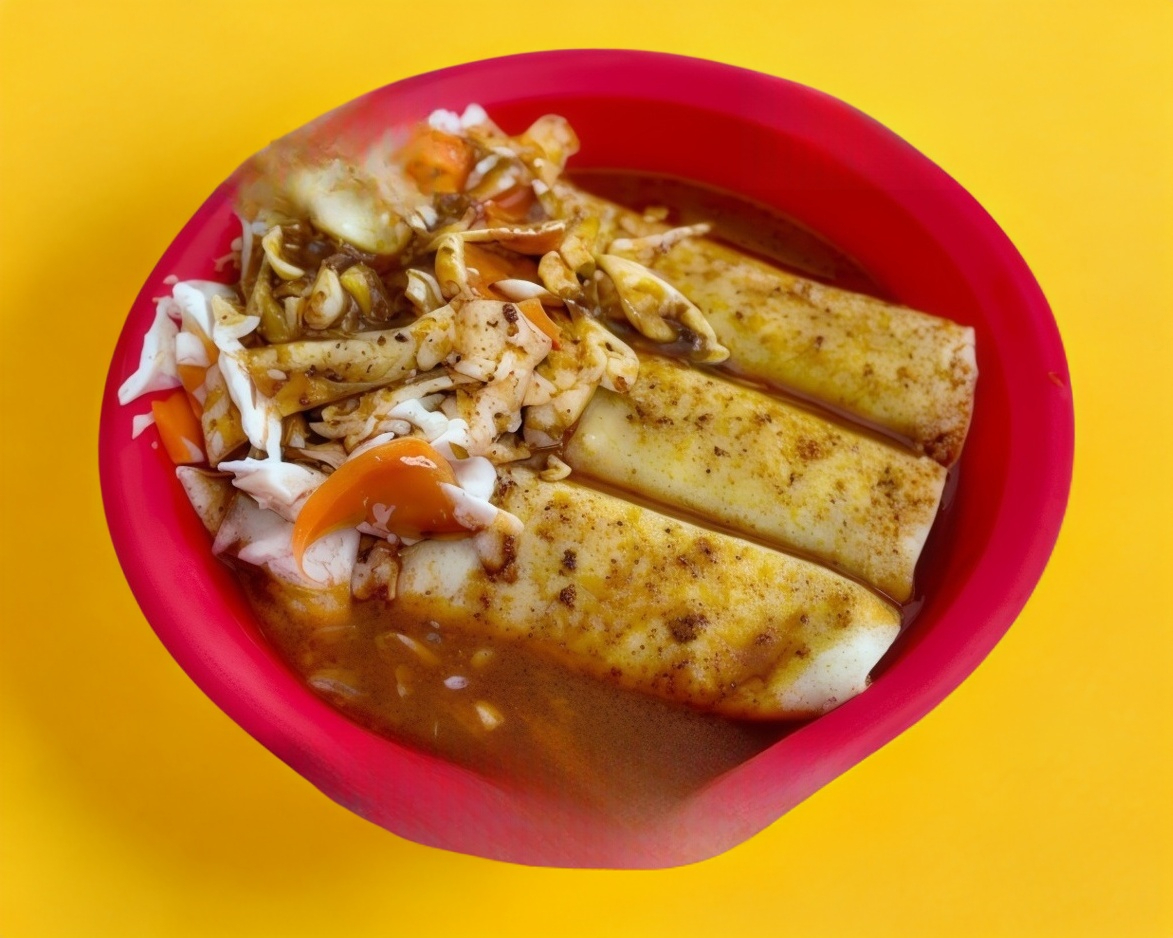 Con col morado, salsa a la mexicana, aderezo de chipotle, ajonjolí y aguacate.