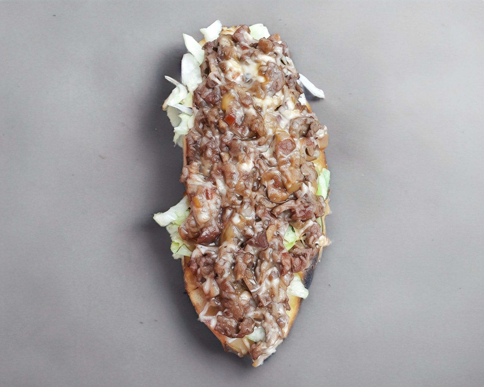 Doble carne, chorizo, queso amarillo, cebolla guisada y chipotle con papas.