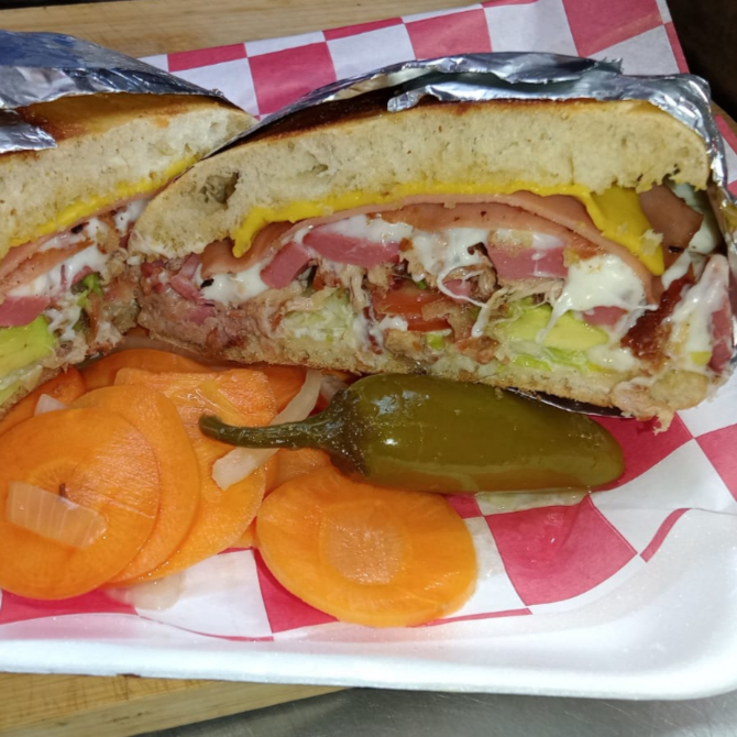 CARNE DE RES, JAMON, Q. OAXACA, Q AMARILLO, AGUACATE, CHILES Y ZANAHORIAS EN VINAGRE (EN BOLSITA).
