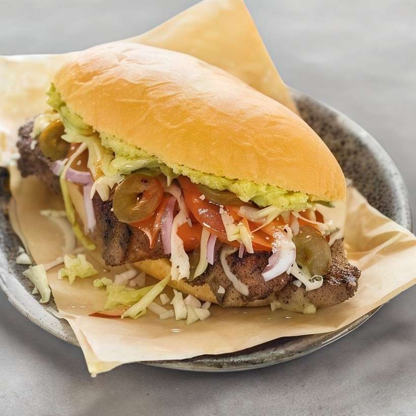 telera untada con mayonesa rellena de lomo natural y verduras