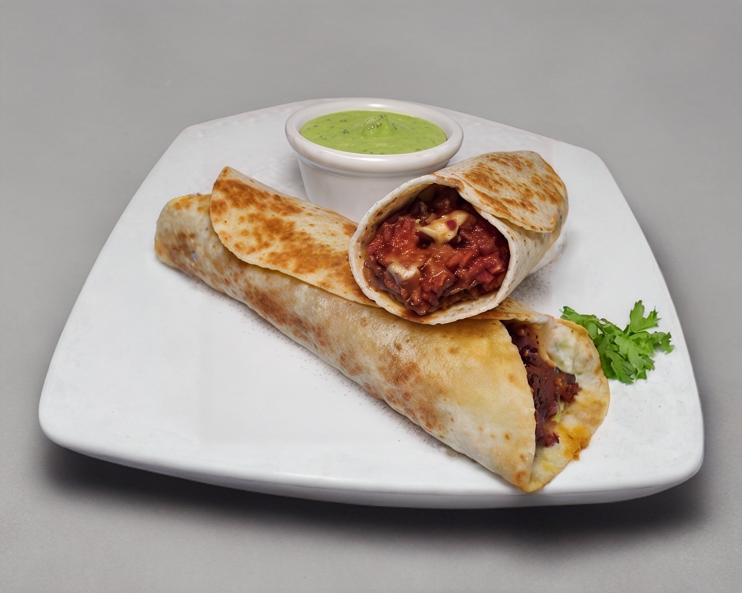 burro relleno de pierna enchilada con queso frijoles lechuga, cebolla, jitomate tortilla