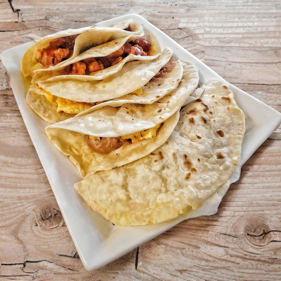 Taco de harina guiso a elegir verdura y frijoles