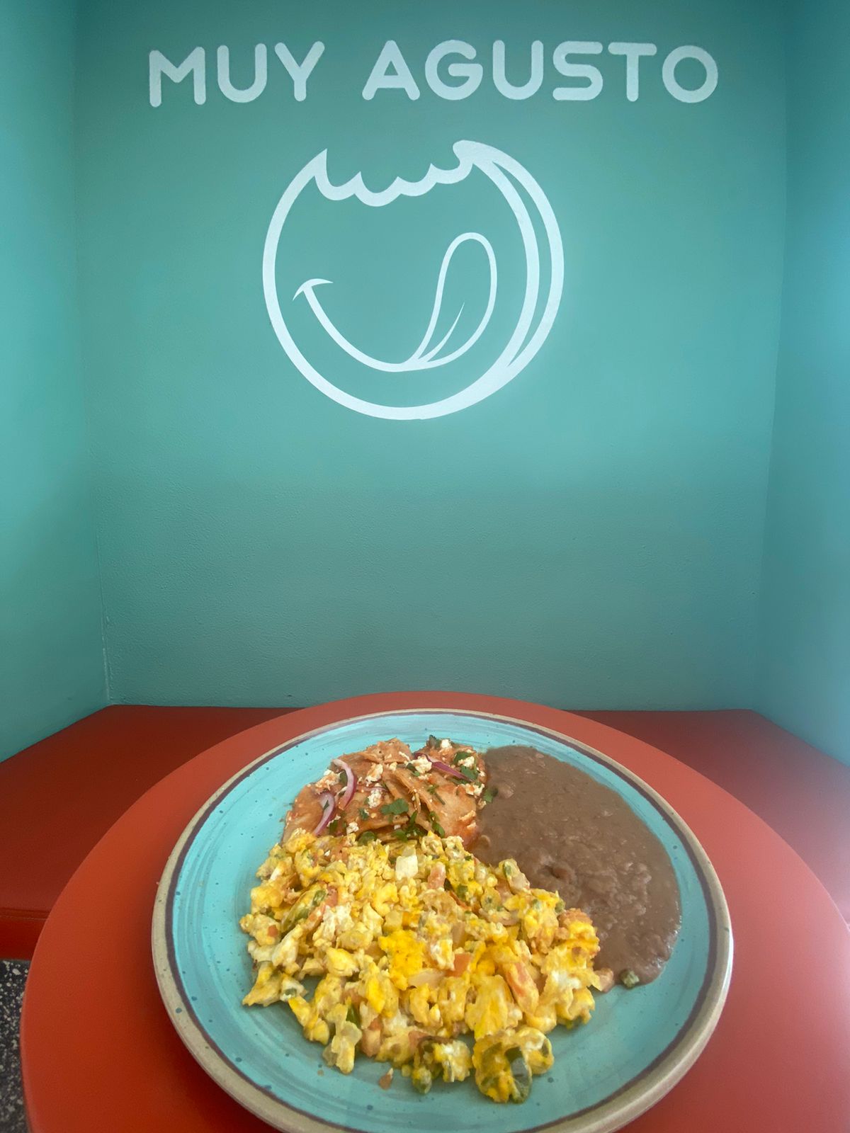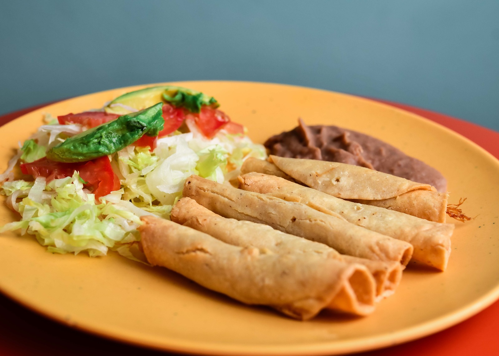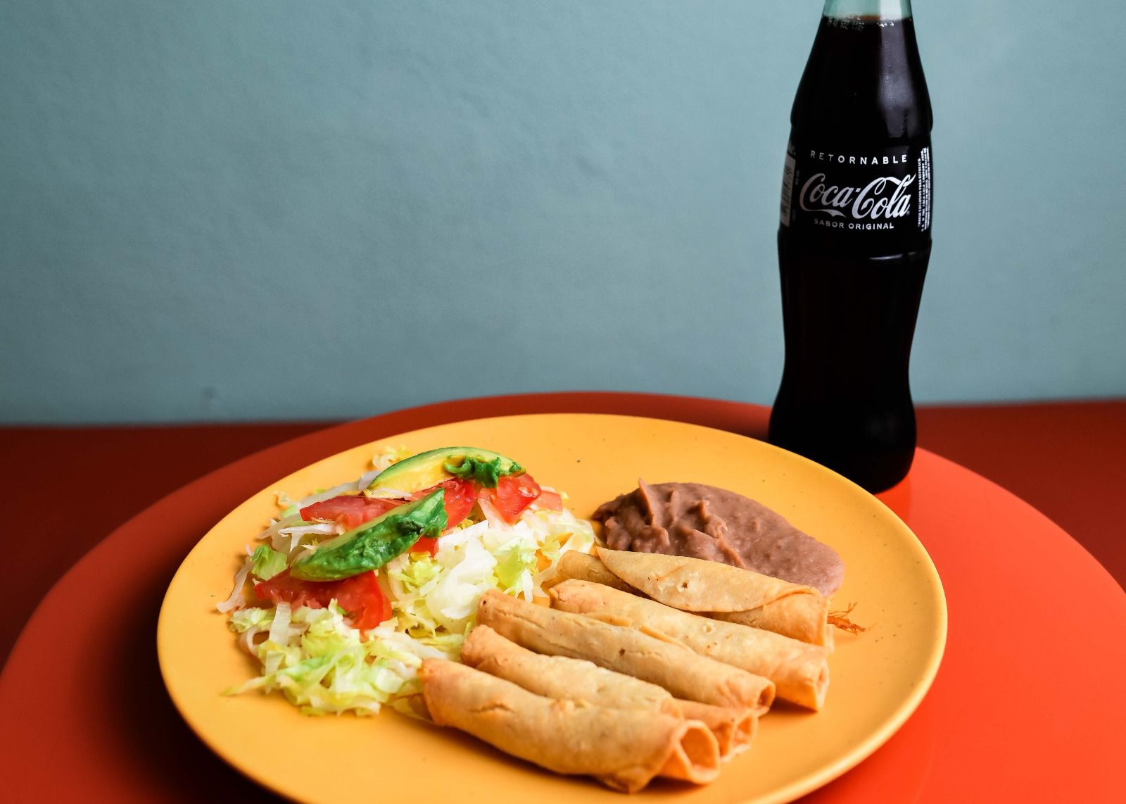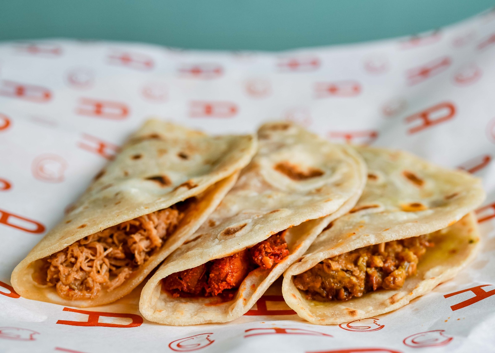 Taco de maíz con chicharrón de la ramos, bañado con salsa de yogurt.