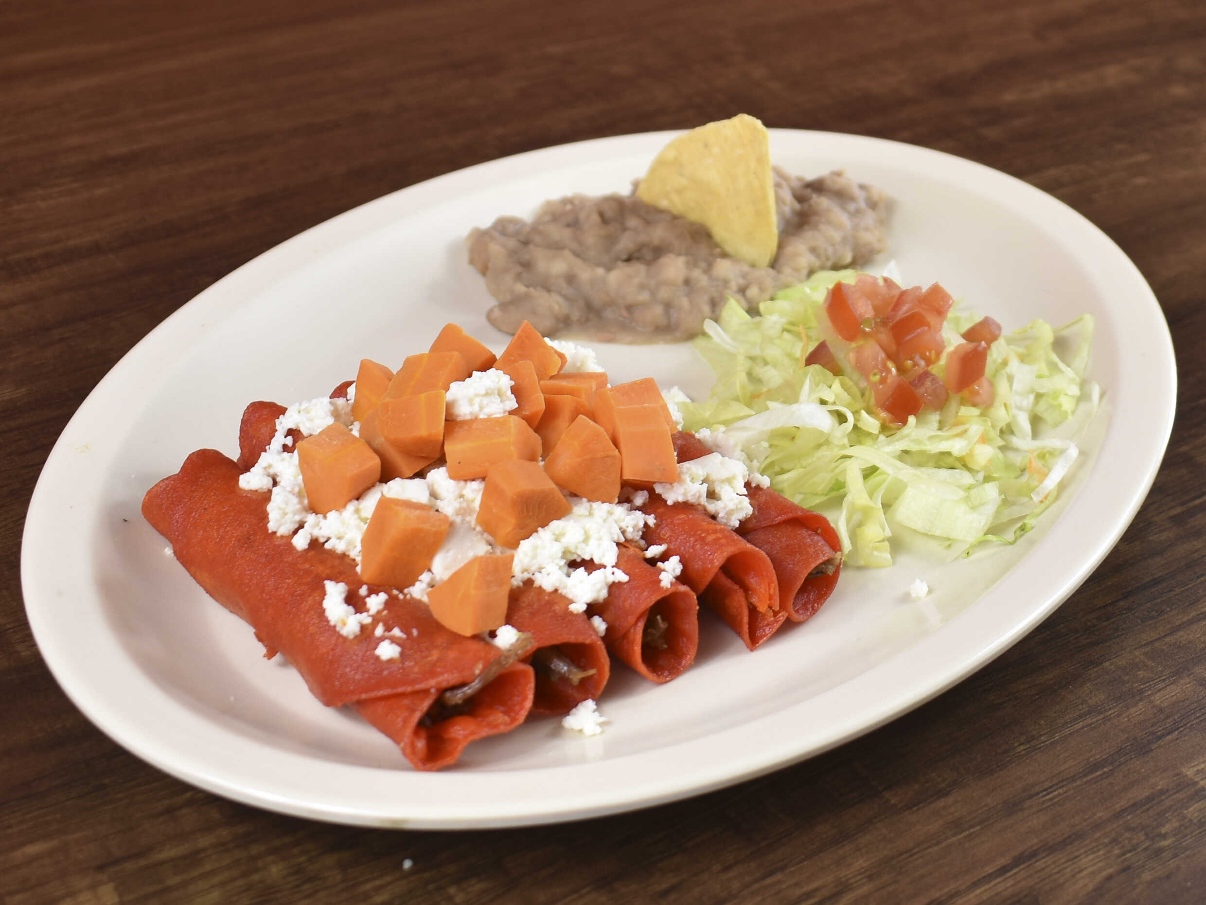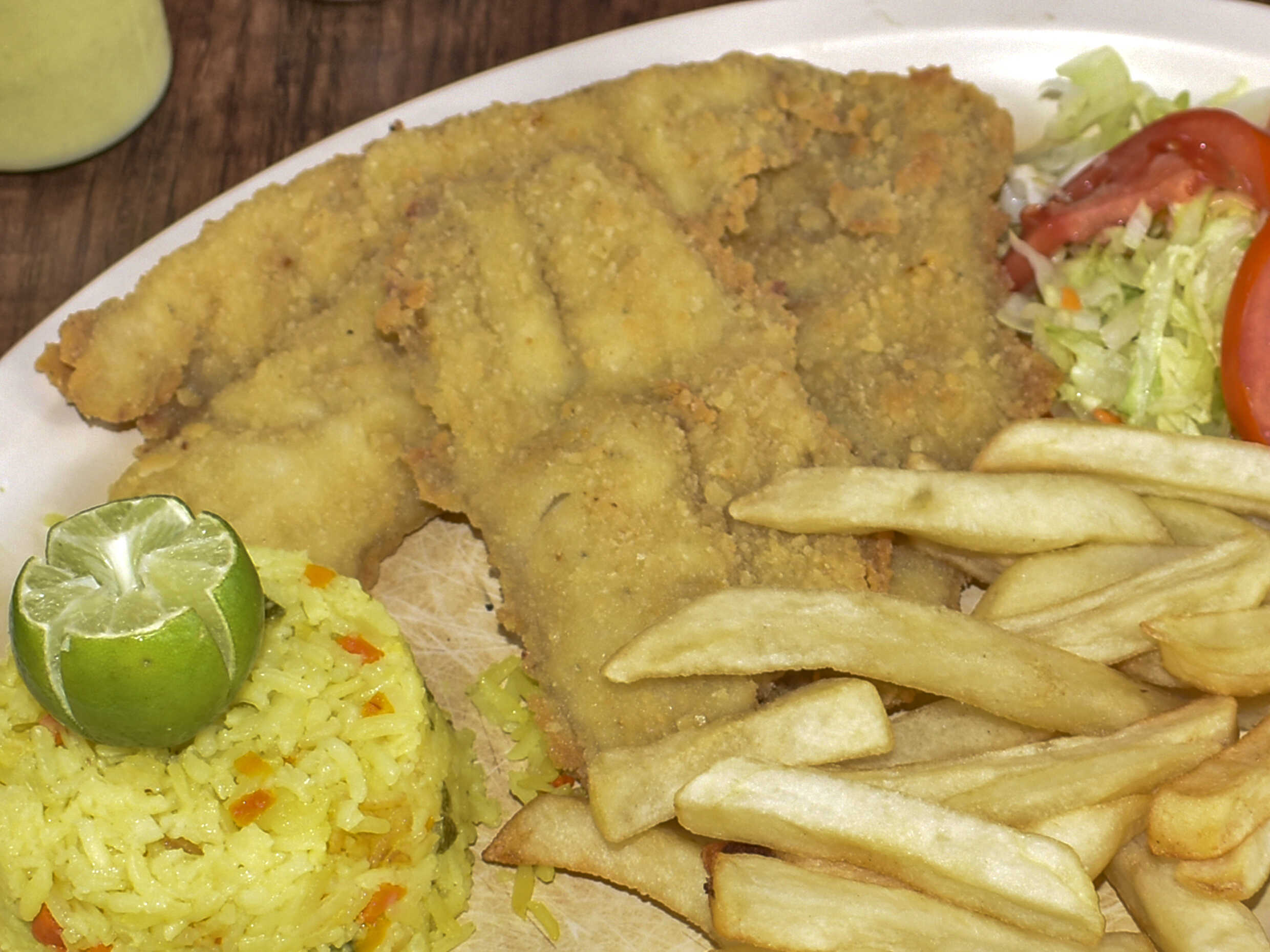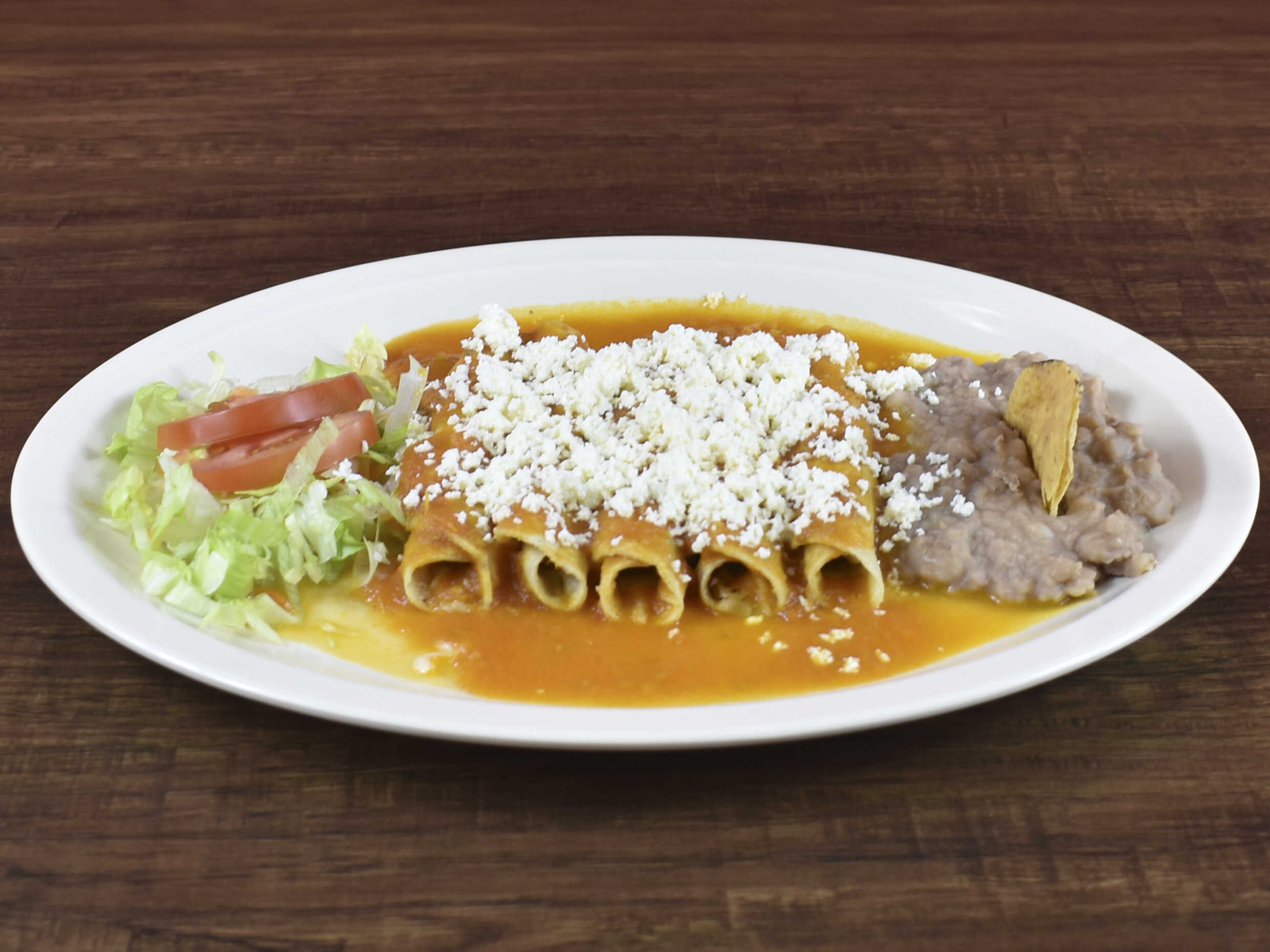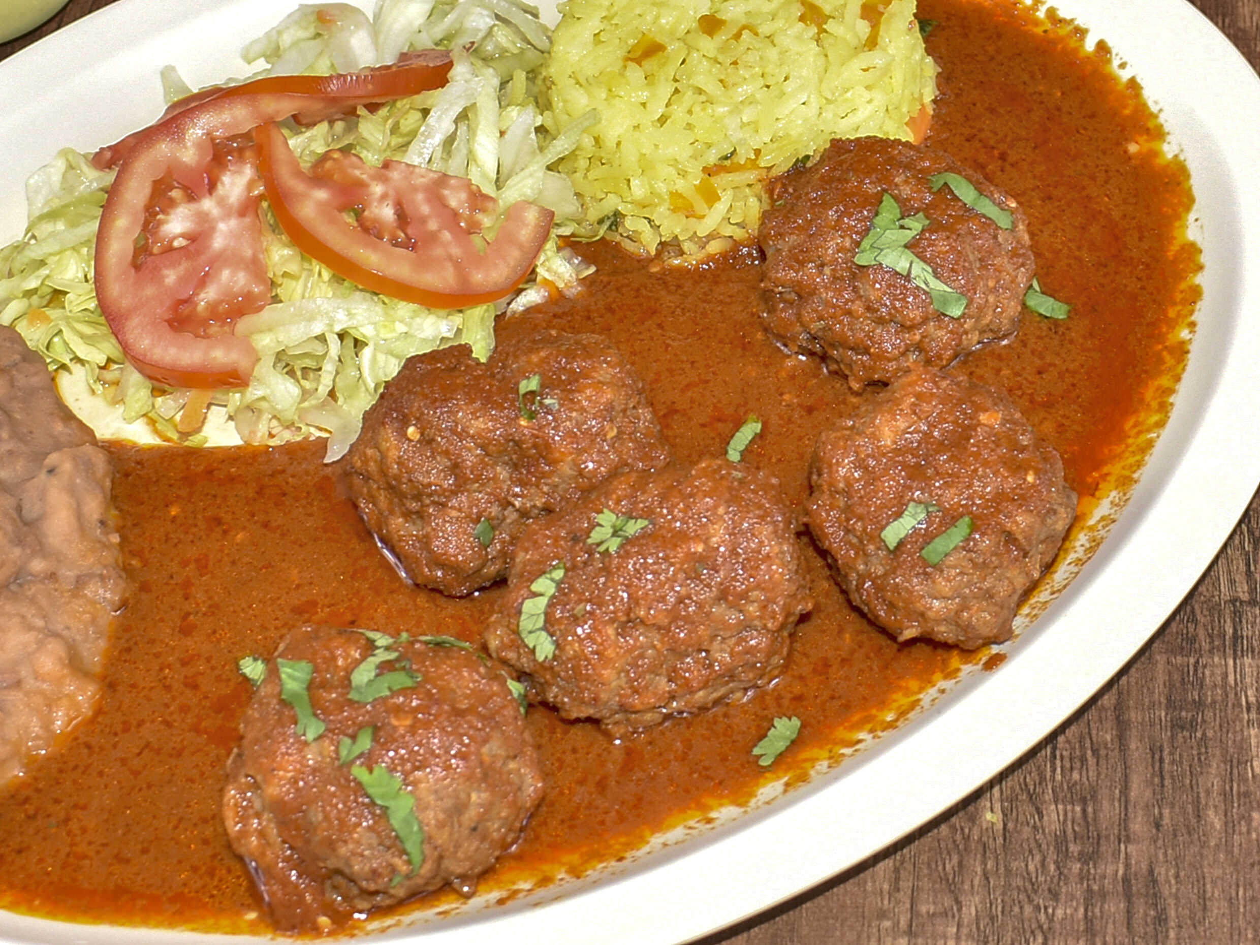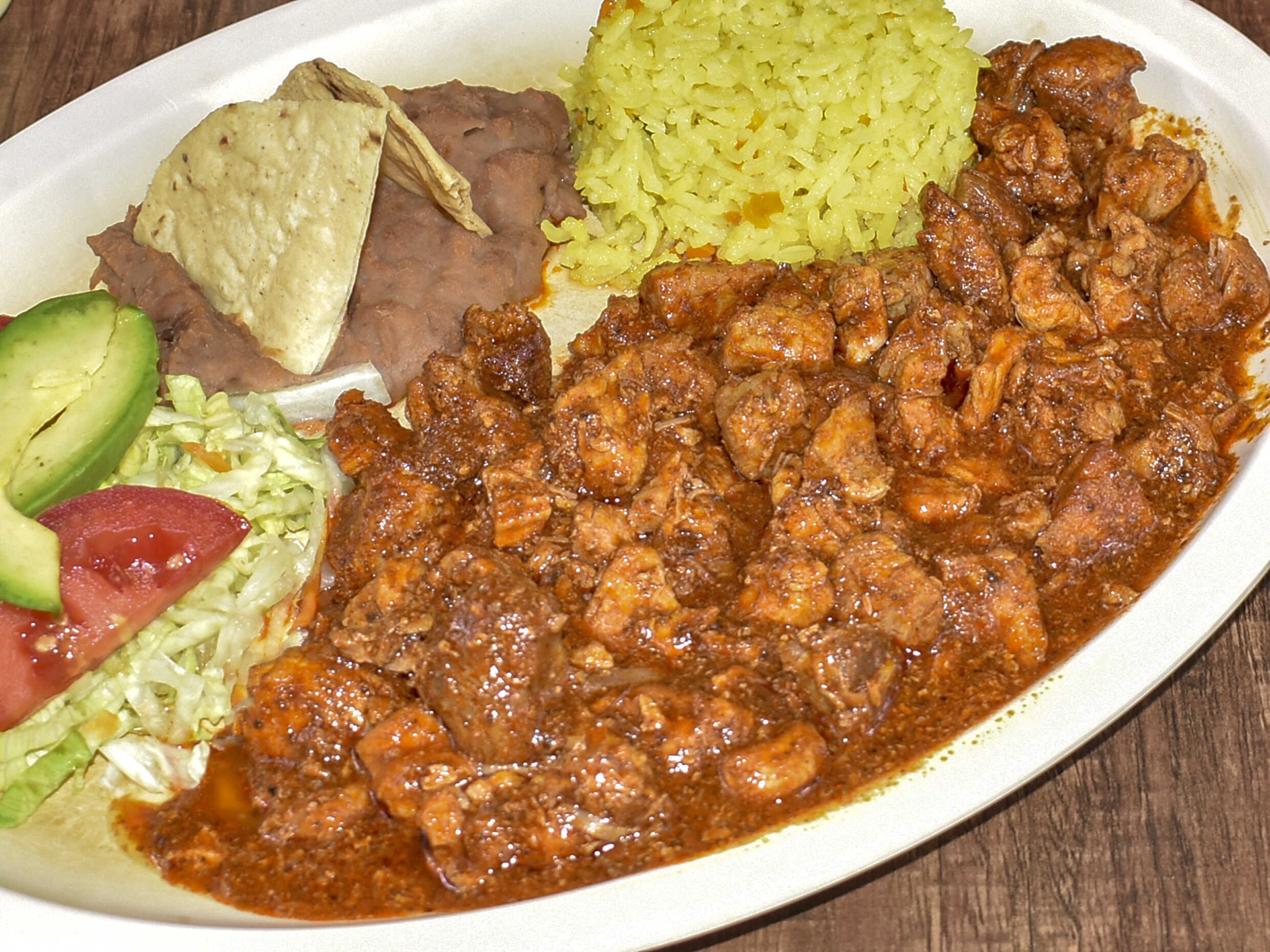 Acompañado de tortillas de maíz arroz frijoles ensalada