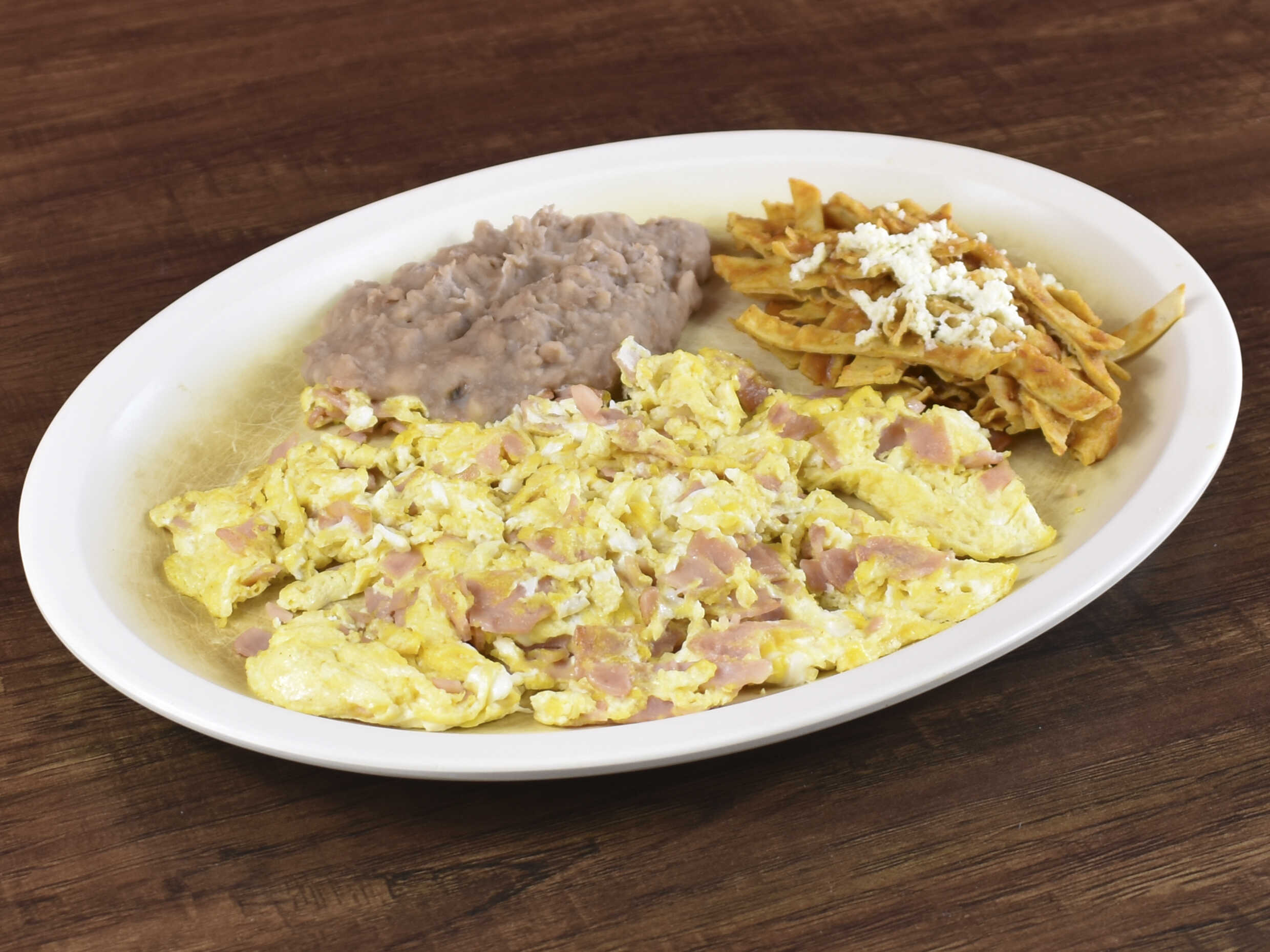 Con jamón y queso. Acompañado de tortillas de maíz.