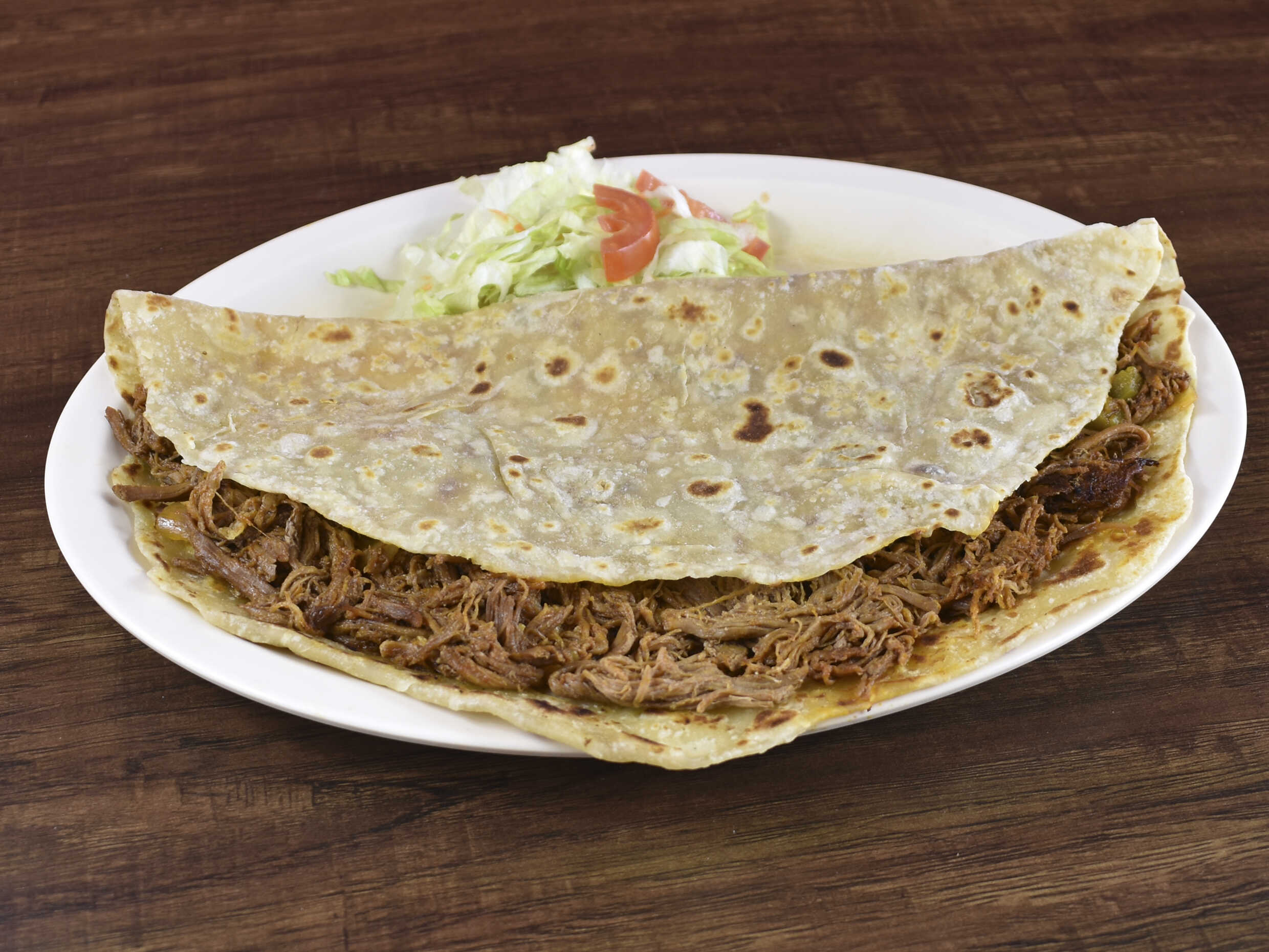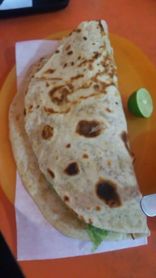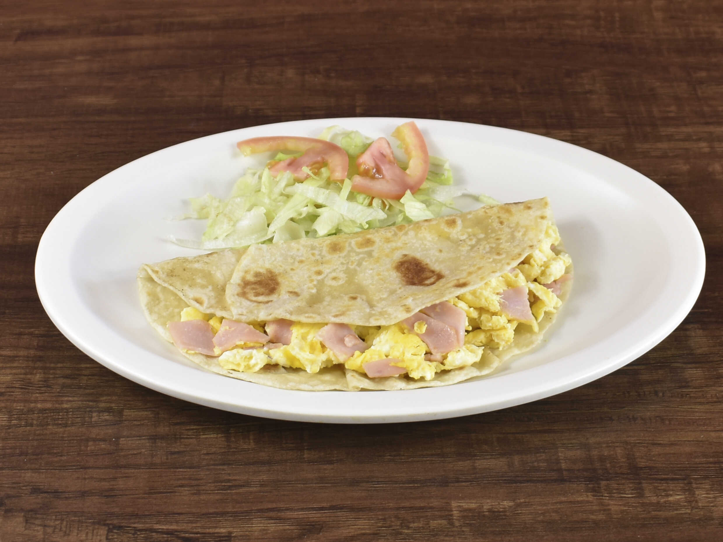 Tortillas Grandes de harina contiene Variedad de guisos ( Huevo con jamón Huevo con chorizo Huevo con salchicha entre otros ), salsa de la casa