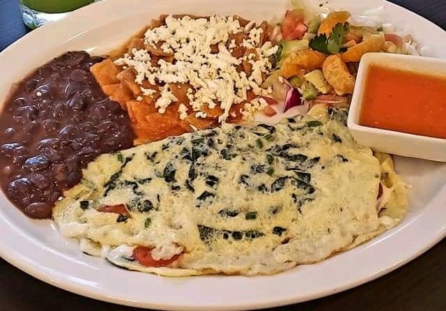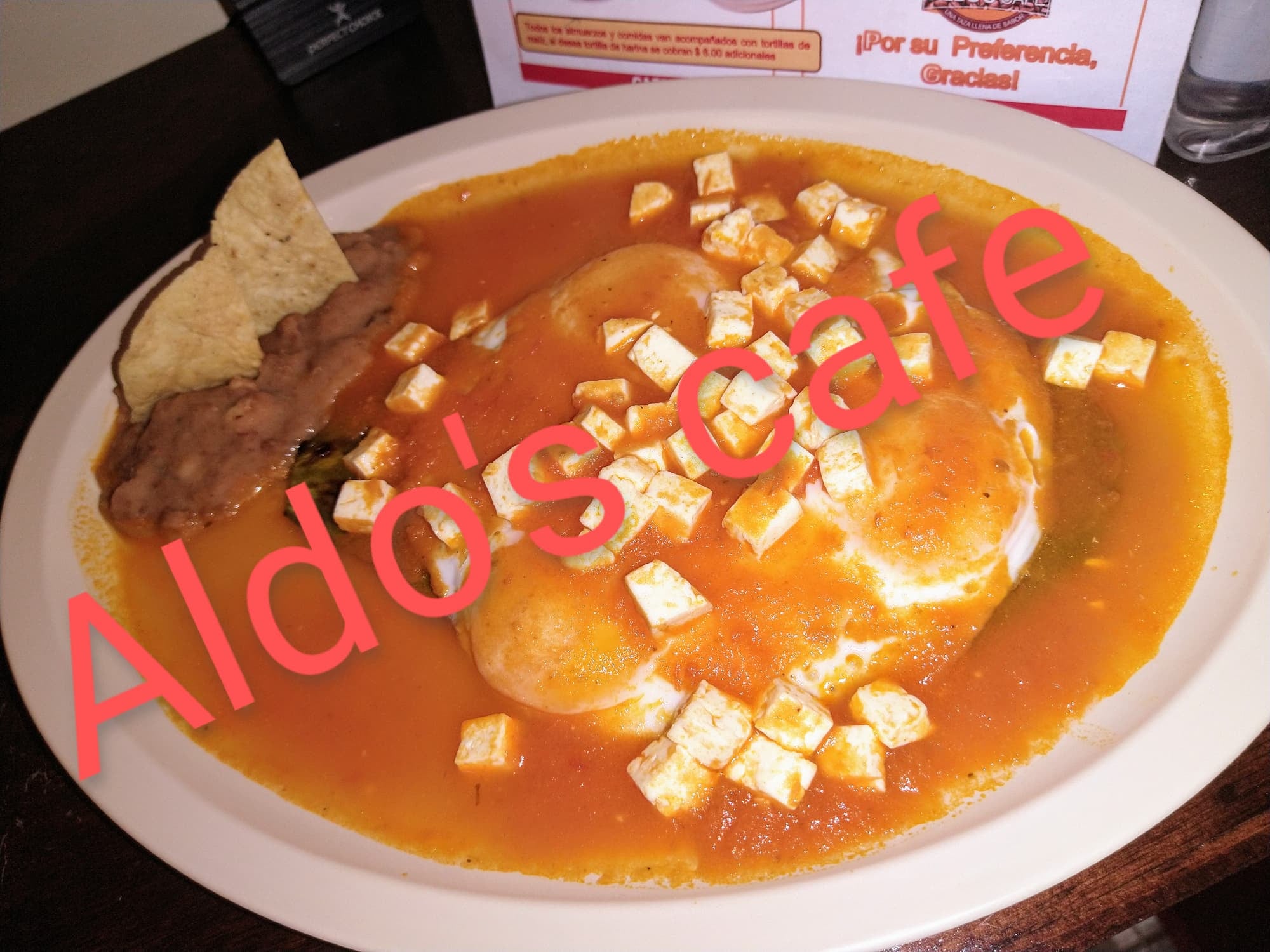 Preparado con 3 huevos con 1 nopal bañados en salsa de tomate y queso panela. Acompañado de tortillas de maíz.