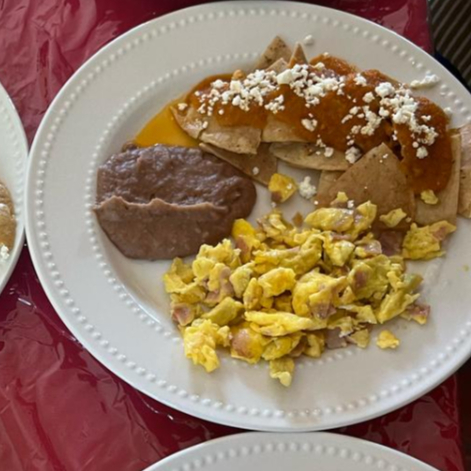 HUEVITOS AL GUSTO ACOMPAÑADOS DE FRIJOLES Y CHILAQUILES