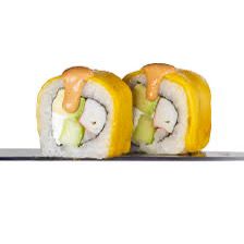Queso crema, aguacate, surimi, envuelto en surimi.
