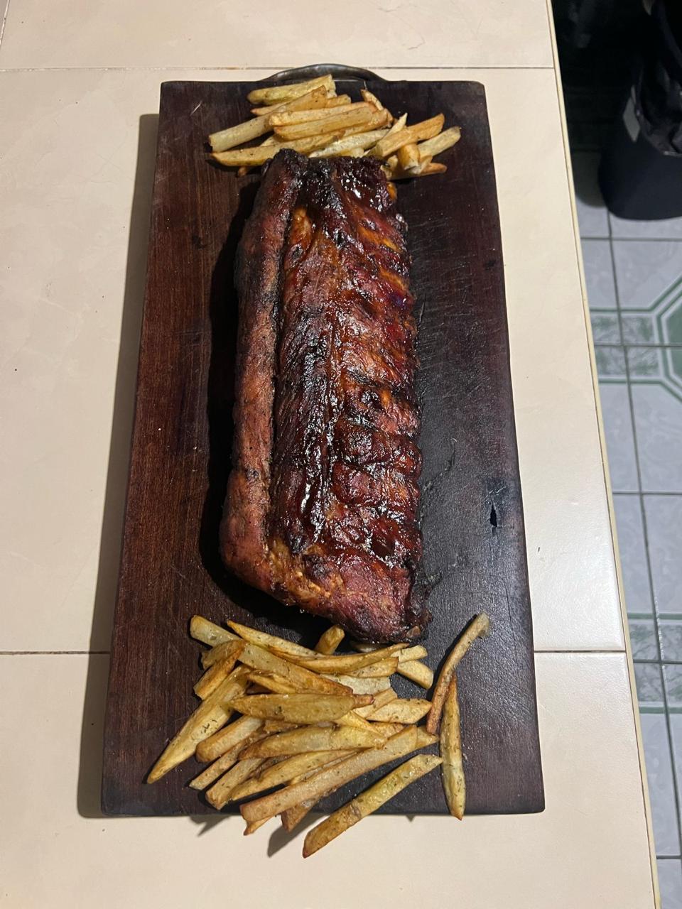 Delicioso corte acompañado de papas fritas, chiles toreados. costillar de cerdo baby back.