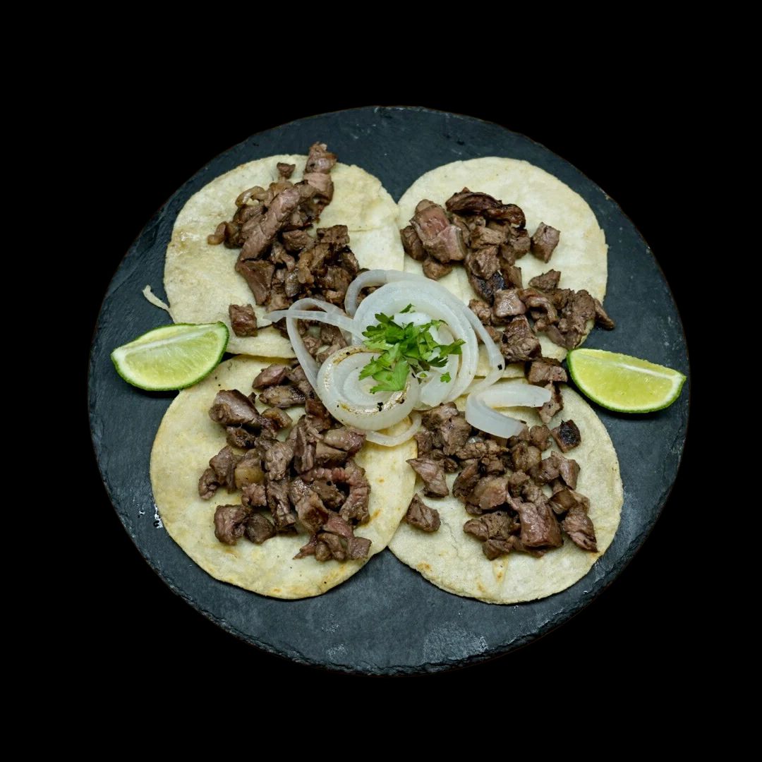 Orden de 4 con cebollita asada, pico de gallo y salsa de la casa.