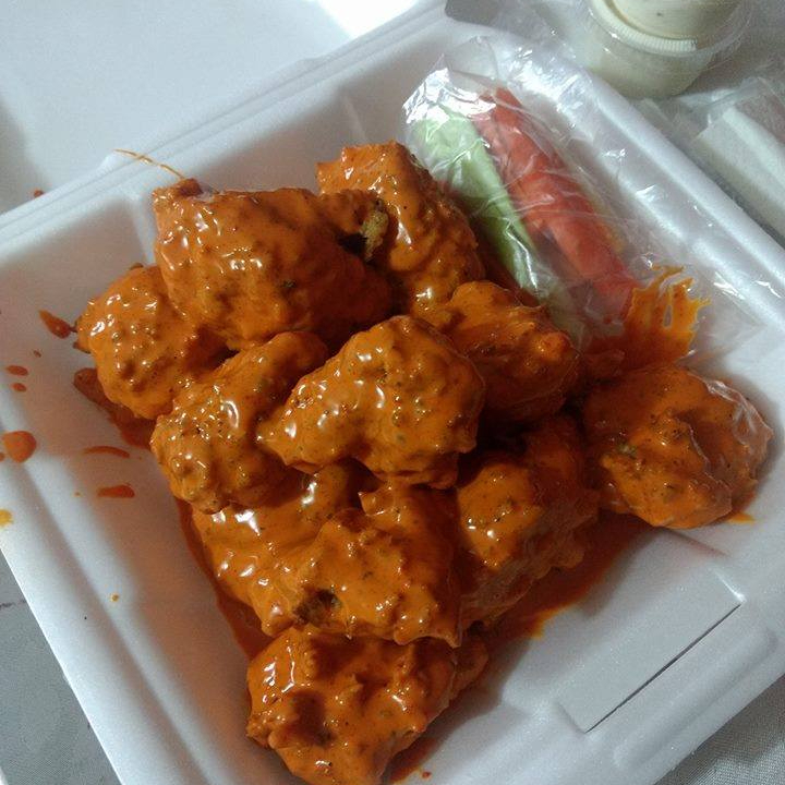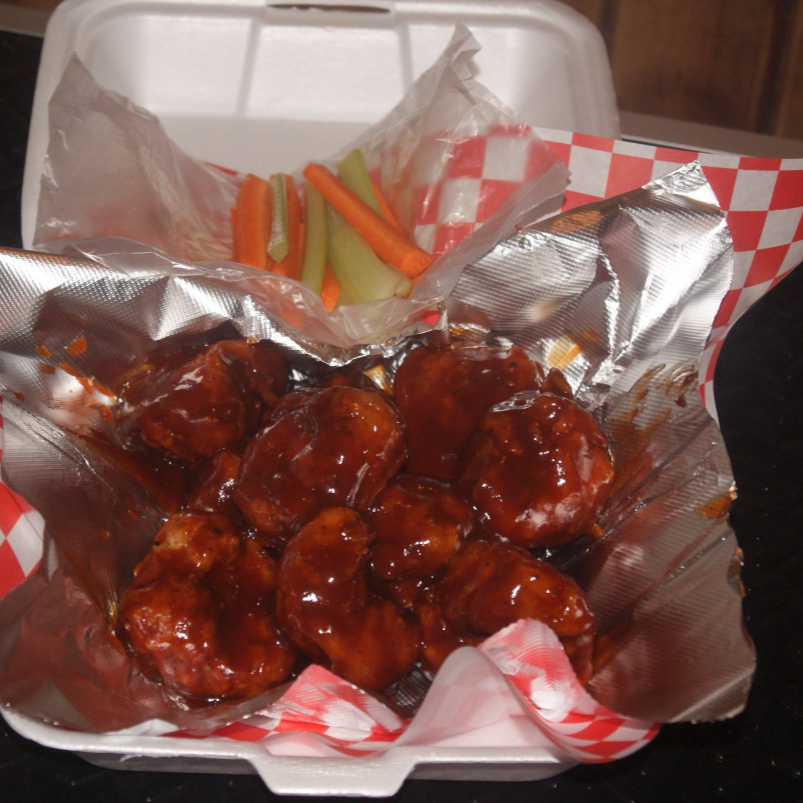 Trozos de pechuga de pollo crujientes, bañados en tu salsa favorita.