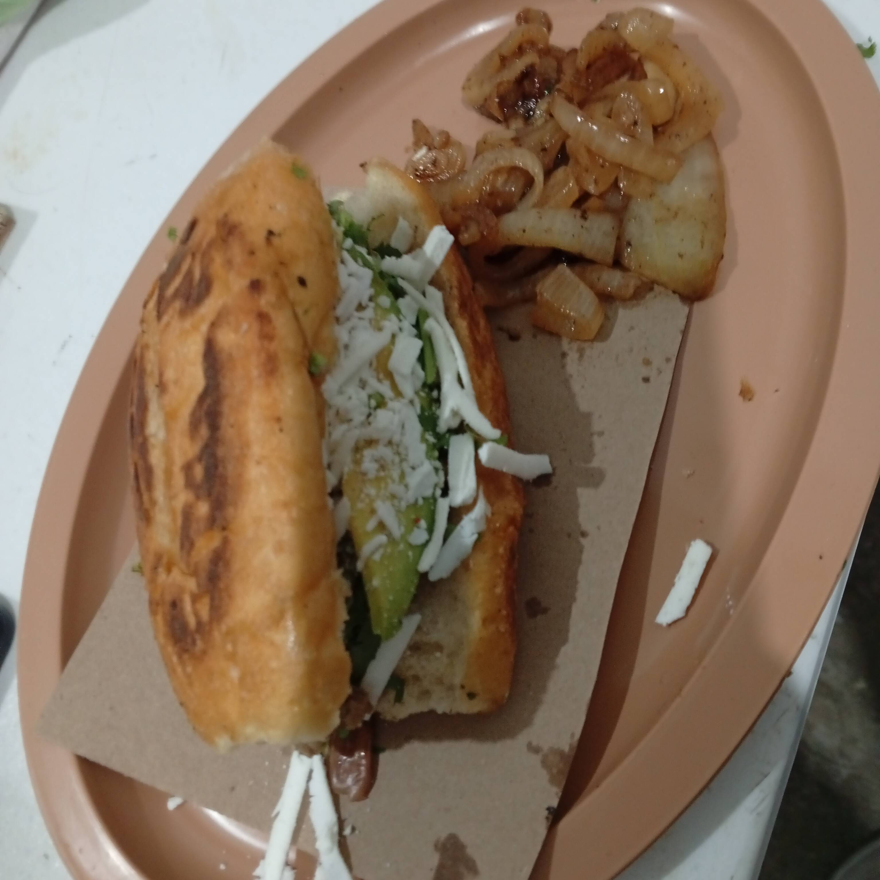 TORTILLA DE HARINA GRANDE,QUESO ASADERO,AGUACATE,CEBOLLA,CILANTRO,CEBOLLA ASADA