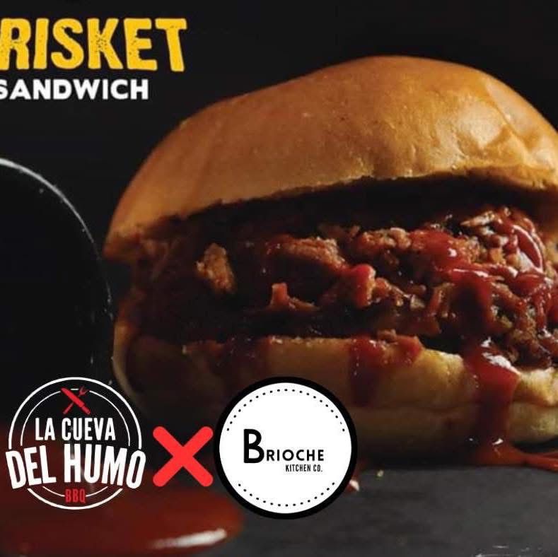 Pan brioche, huevo estilo omelette, queso cheddar gratinado y brisket ahumado, acompañado de papa hashbrown.