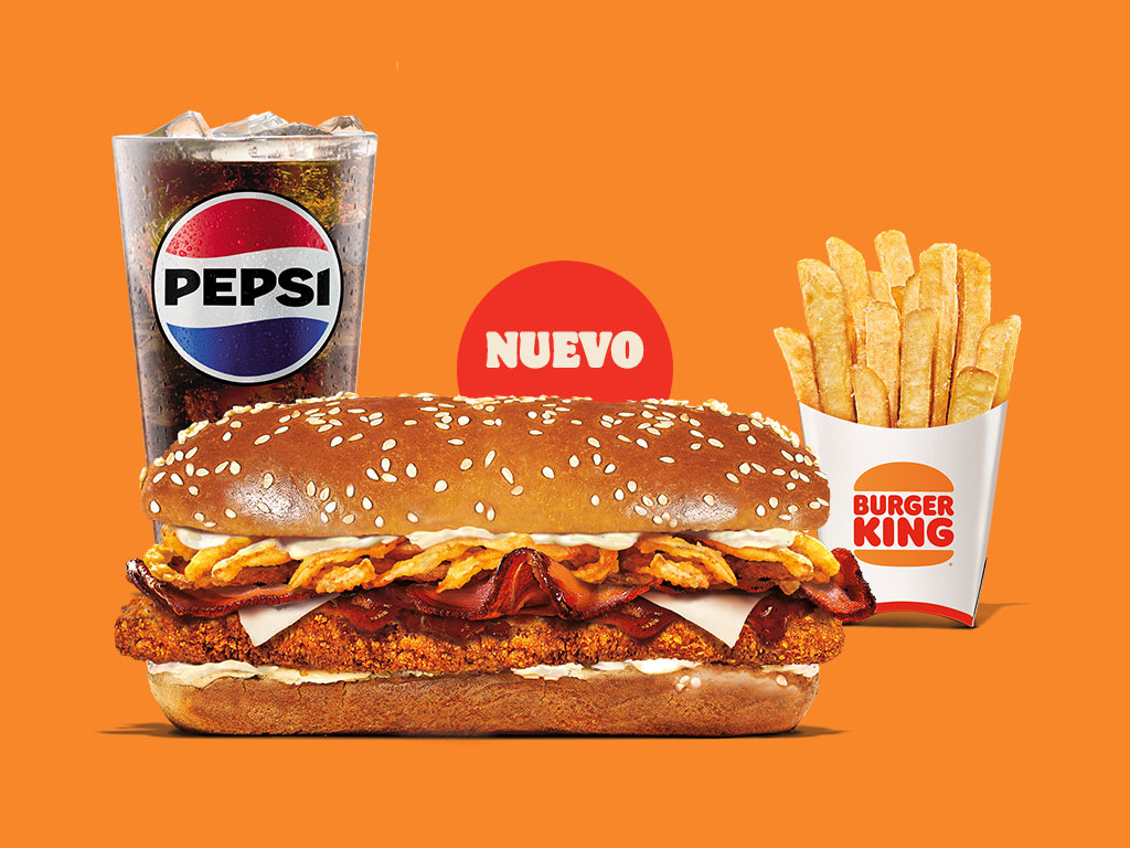 Prueba ahora la nueva Honey Chipotle Crispy King, con crujiente 'pollo buttermilk' cubierto de salsa agridulce Honey Chipotle, acompañado de cebollita crujiente, queso suizo y mayonesa en un pan brioche. Acompañada de papas chicas y refresco.