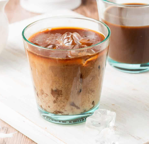 Cafe helado con un toque de chocolate y leche cremosa