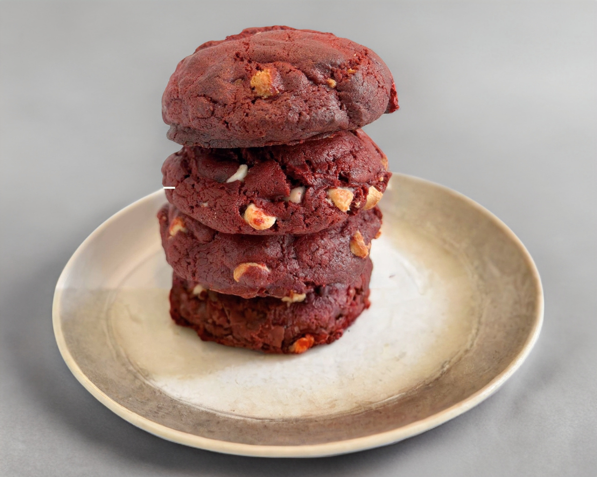 Galleta sabor a chocolate con relleno de queso crema y chispas de chocolate blanco
