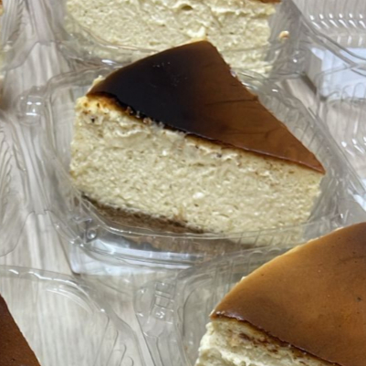Deliciosa rebanada de cheesecake cremosa con un base de galleta endulzada con azúcar y nuez