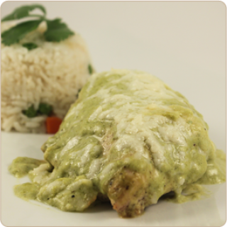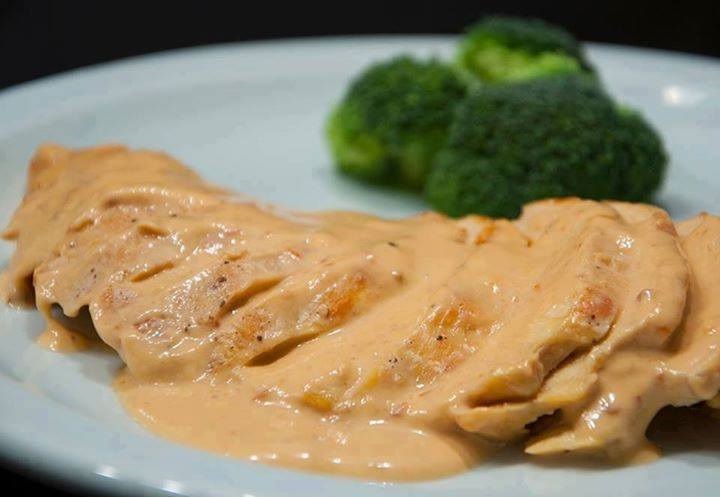Delicioso platillo de pechuga de pollo en chipotle, acompañada de verduras al vapor.