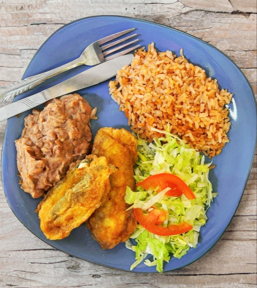 2pz Chile Jalapeño Acompañado de frijoles refritos, lechuga y arroz