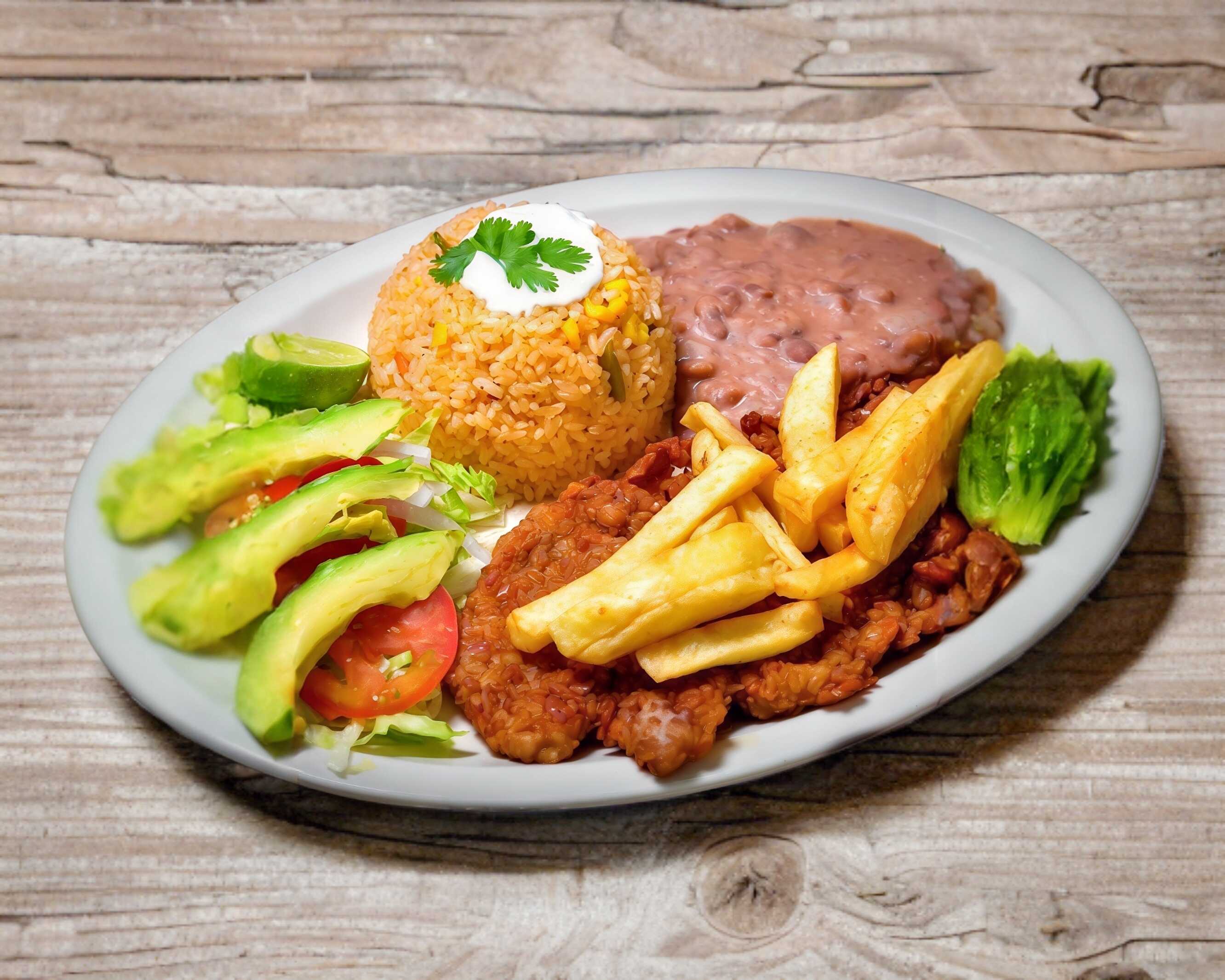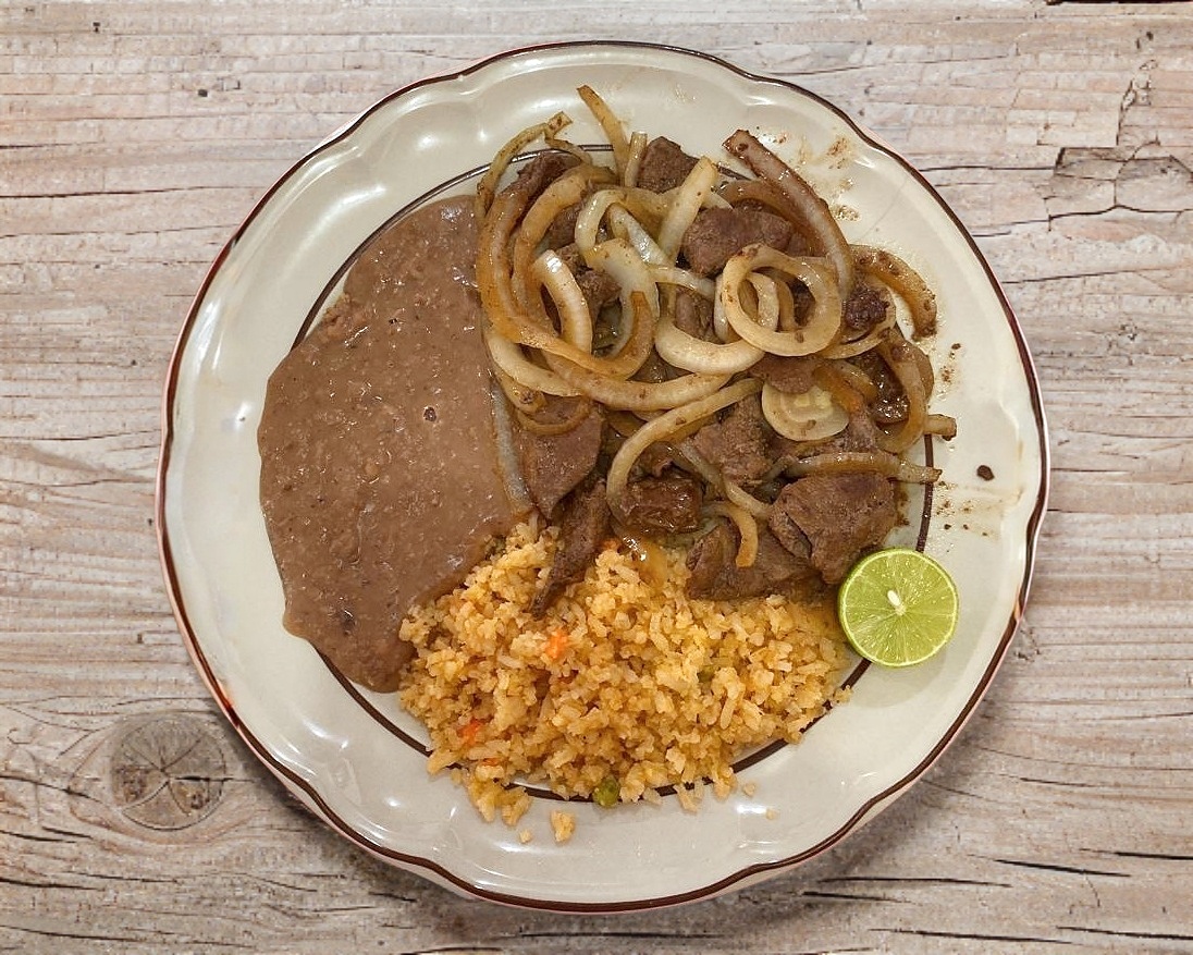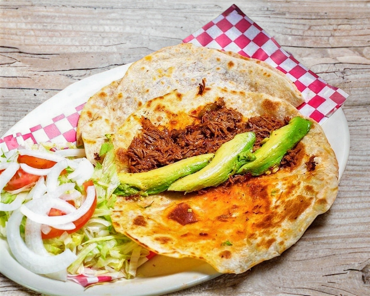 de bisteck, con cilantro, cebolla, queso y aguacate