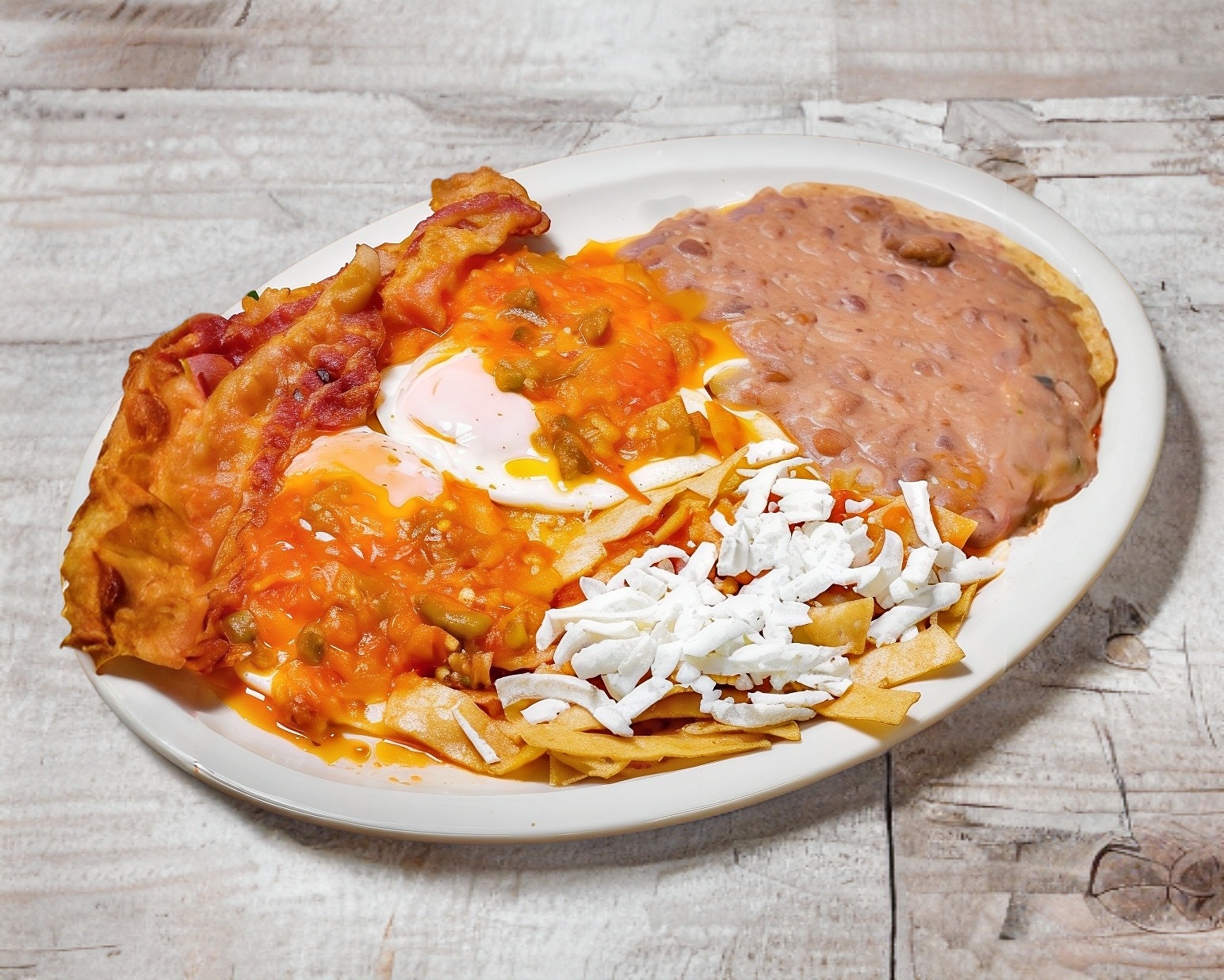 Deliciosos huevos acompañados de frijolitos y chilaquiles