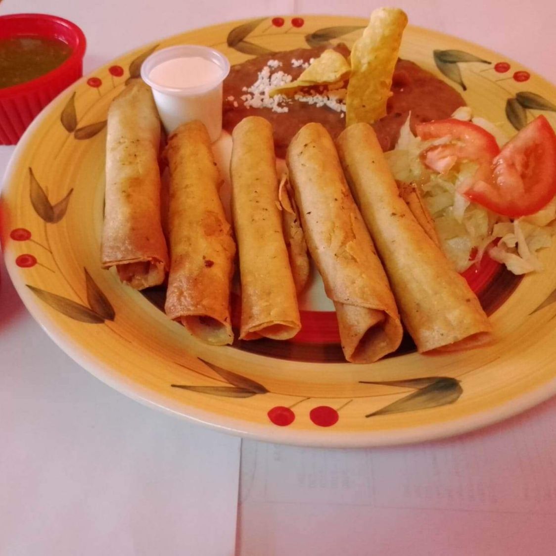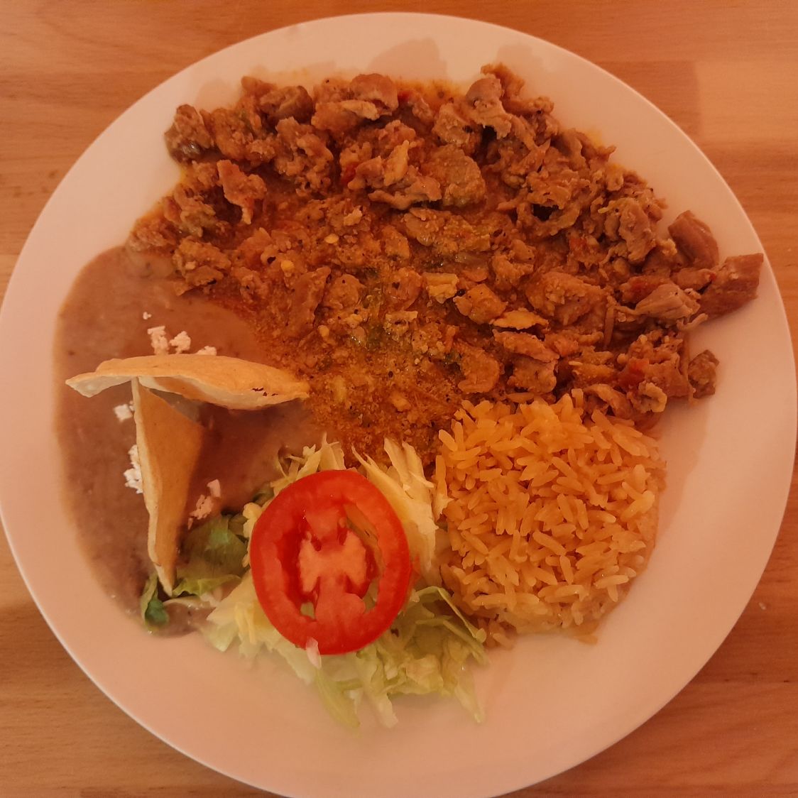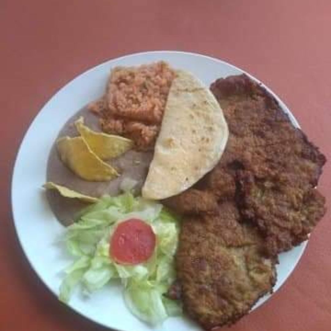 Acompañado de ensalada, arroz, frijoles y tortillas.