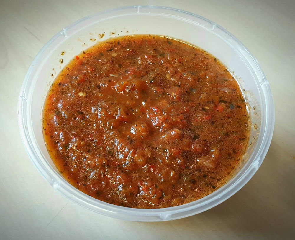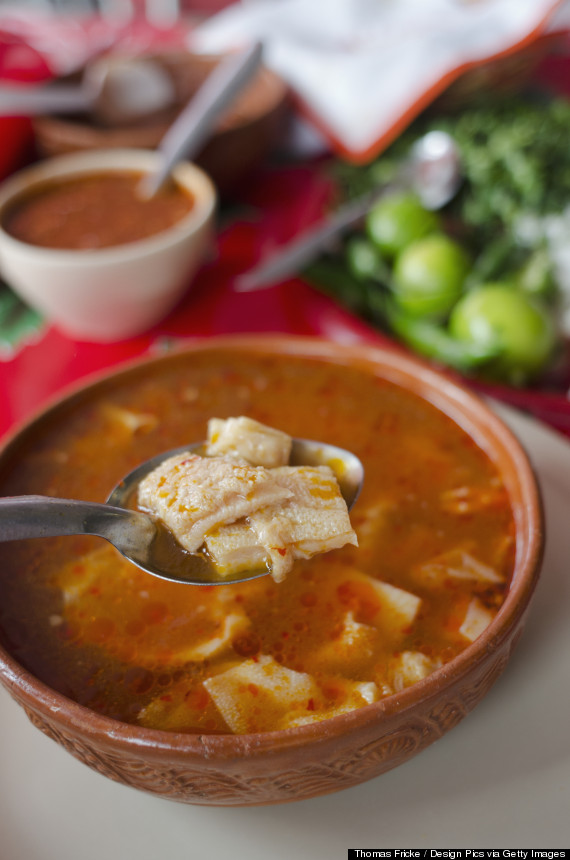 vaso de 1/2 litro de menudo, incluye chile picado, cebolla y tortillas de maiz