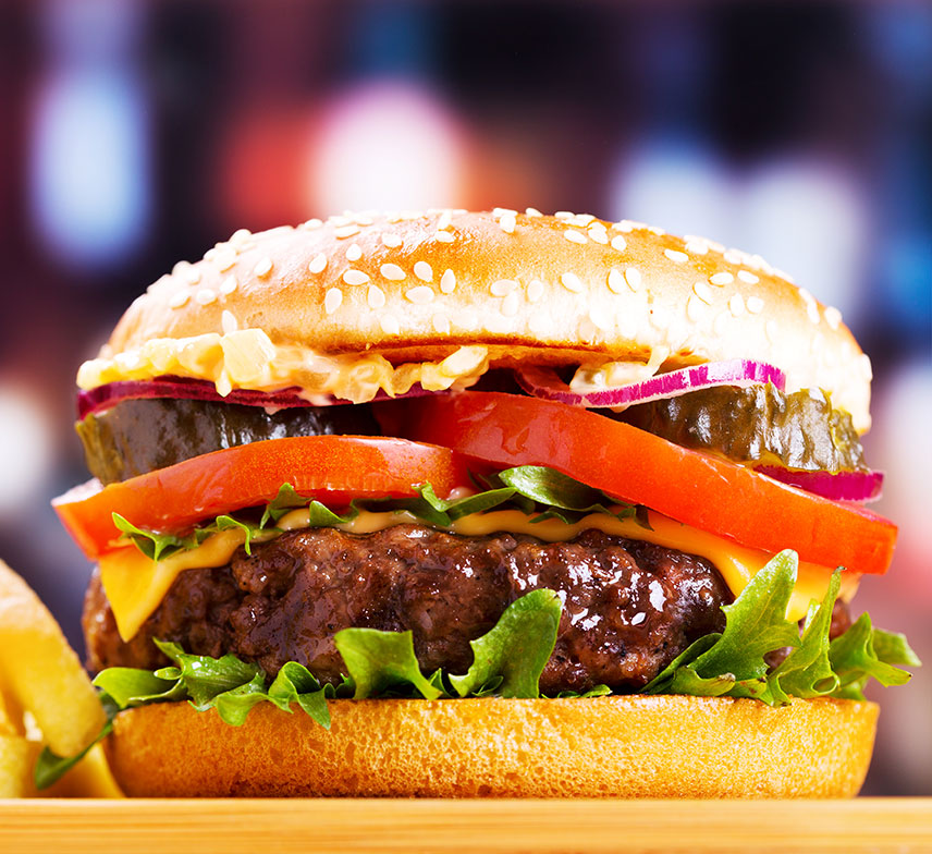 Hamburguesa con carne de res y queso amarillo lechuga,tomate.. (no incluye papas fritas)