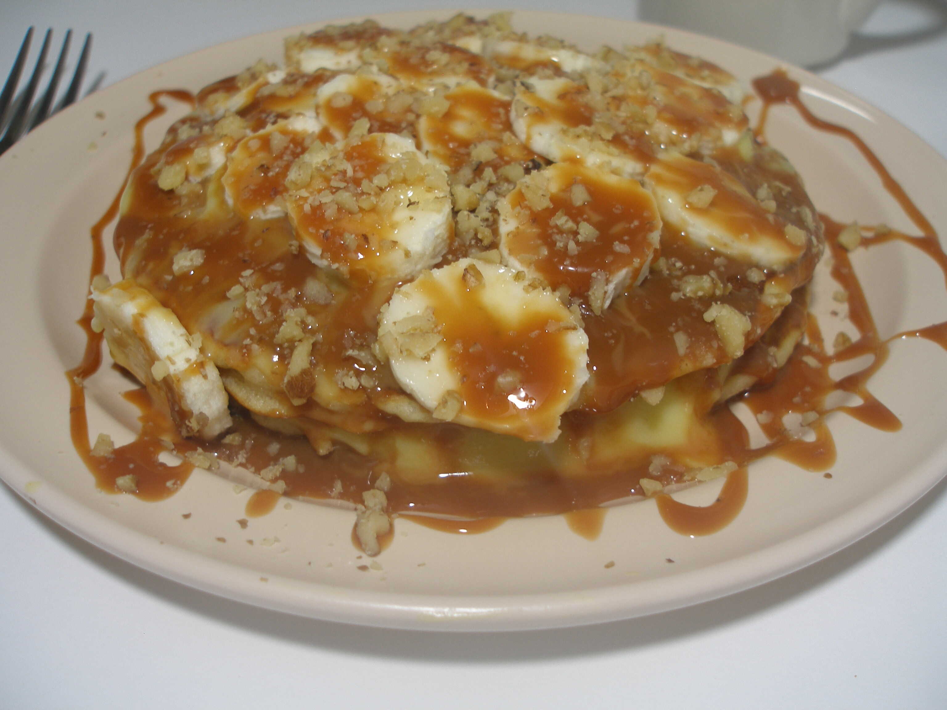 Hot Cakes con Plátano, Cajeta y Nuez
